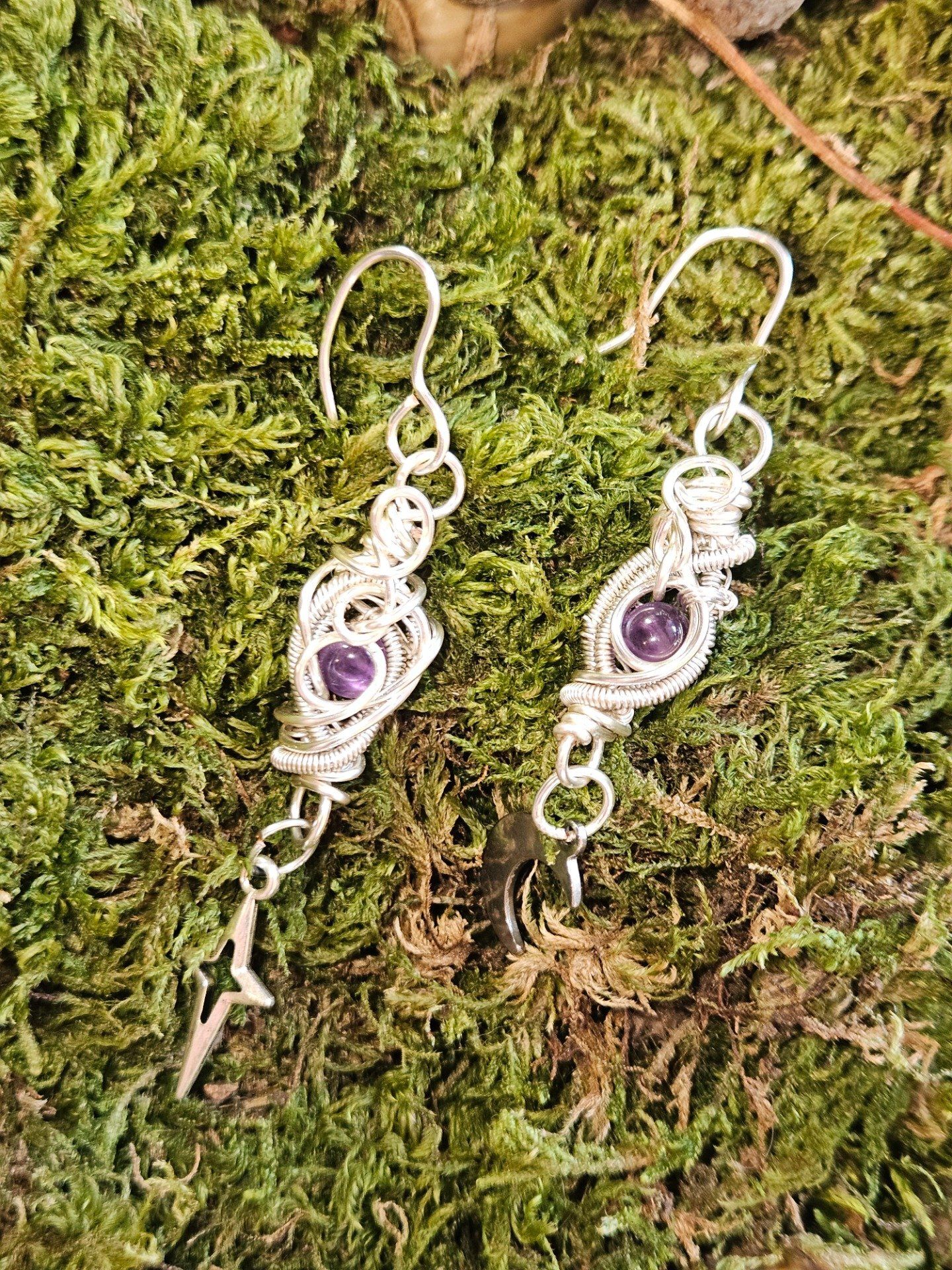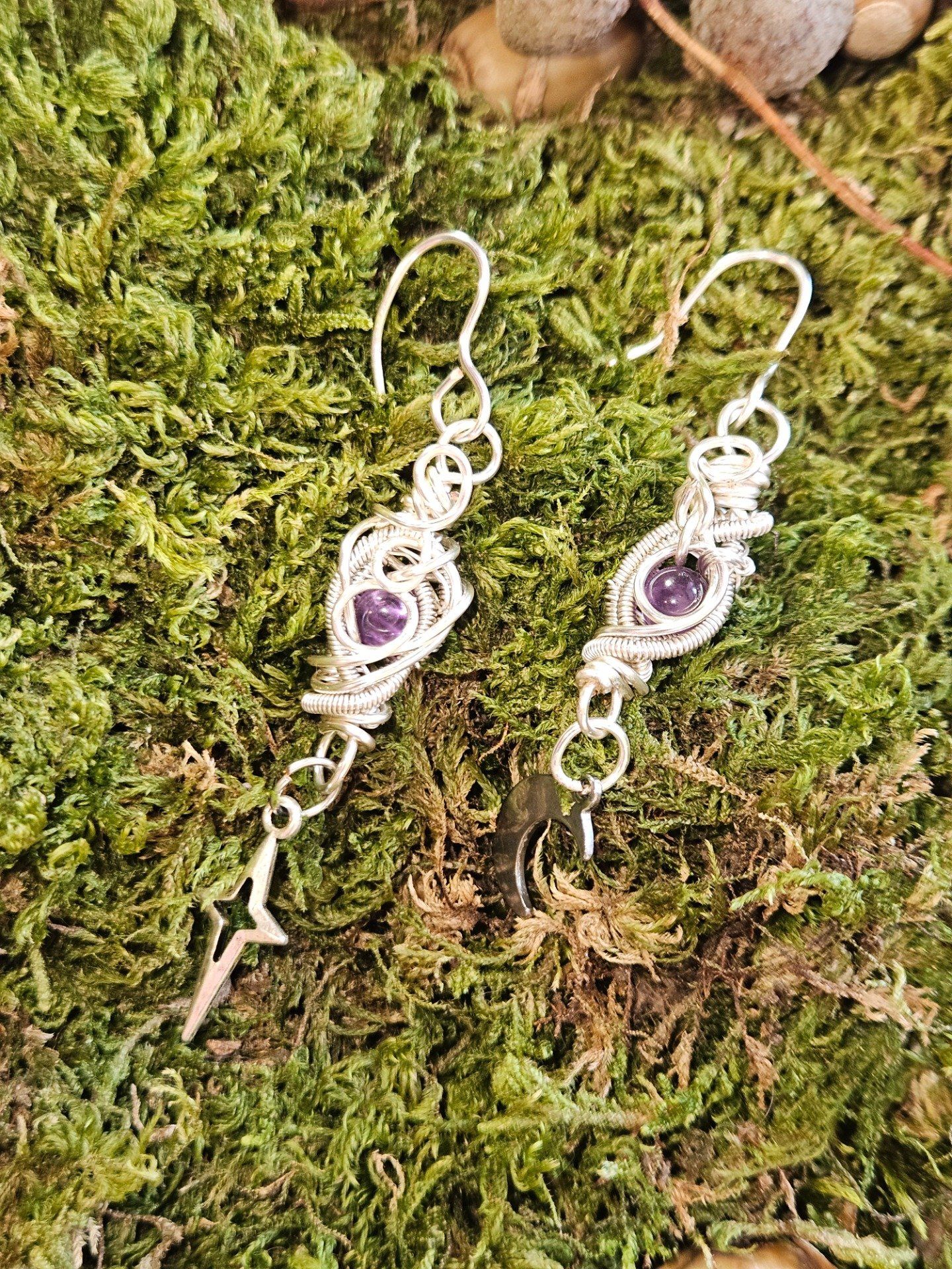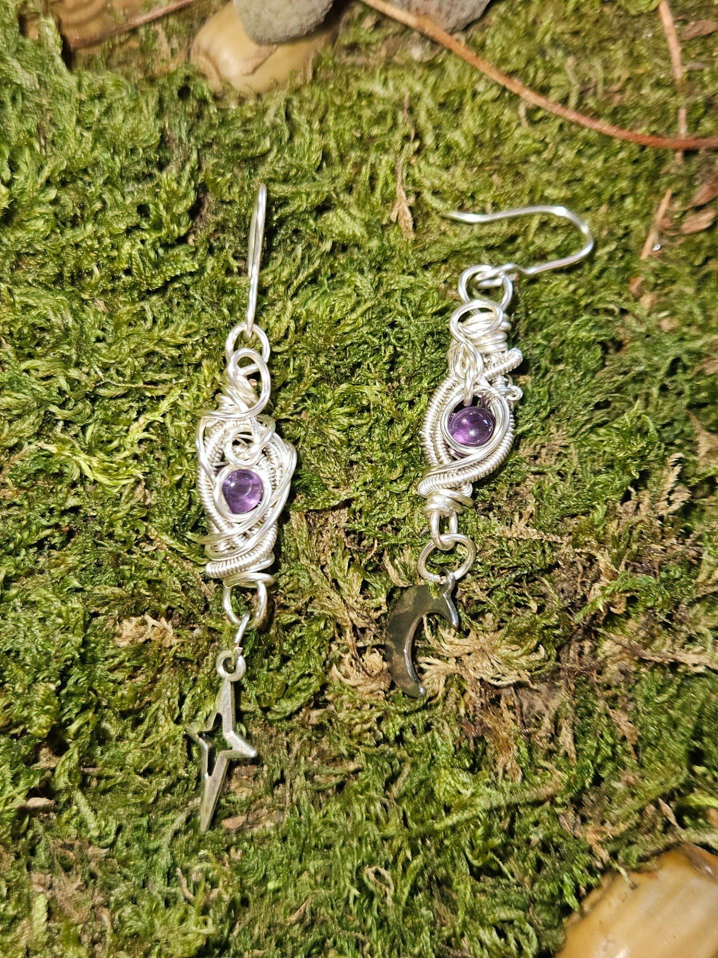 Boucle lune étoile en Améthyste – Pierre de calme et d'équilibre