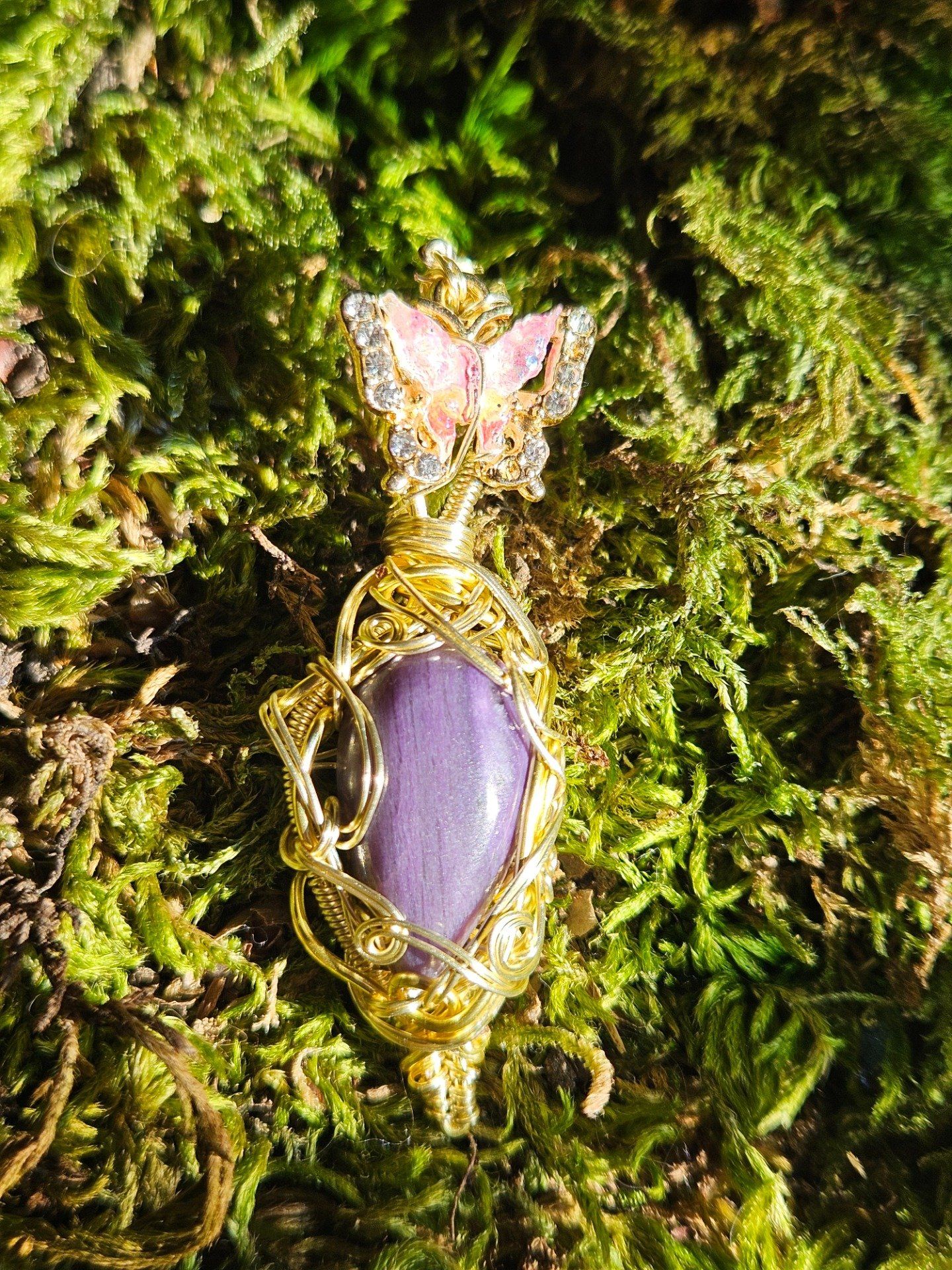 ✨ Amulette en Charoïte ,bijou Or– Pierre de Transformation & Libération ✨