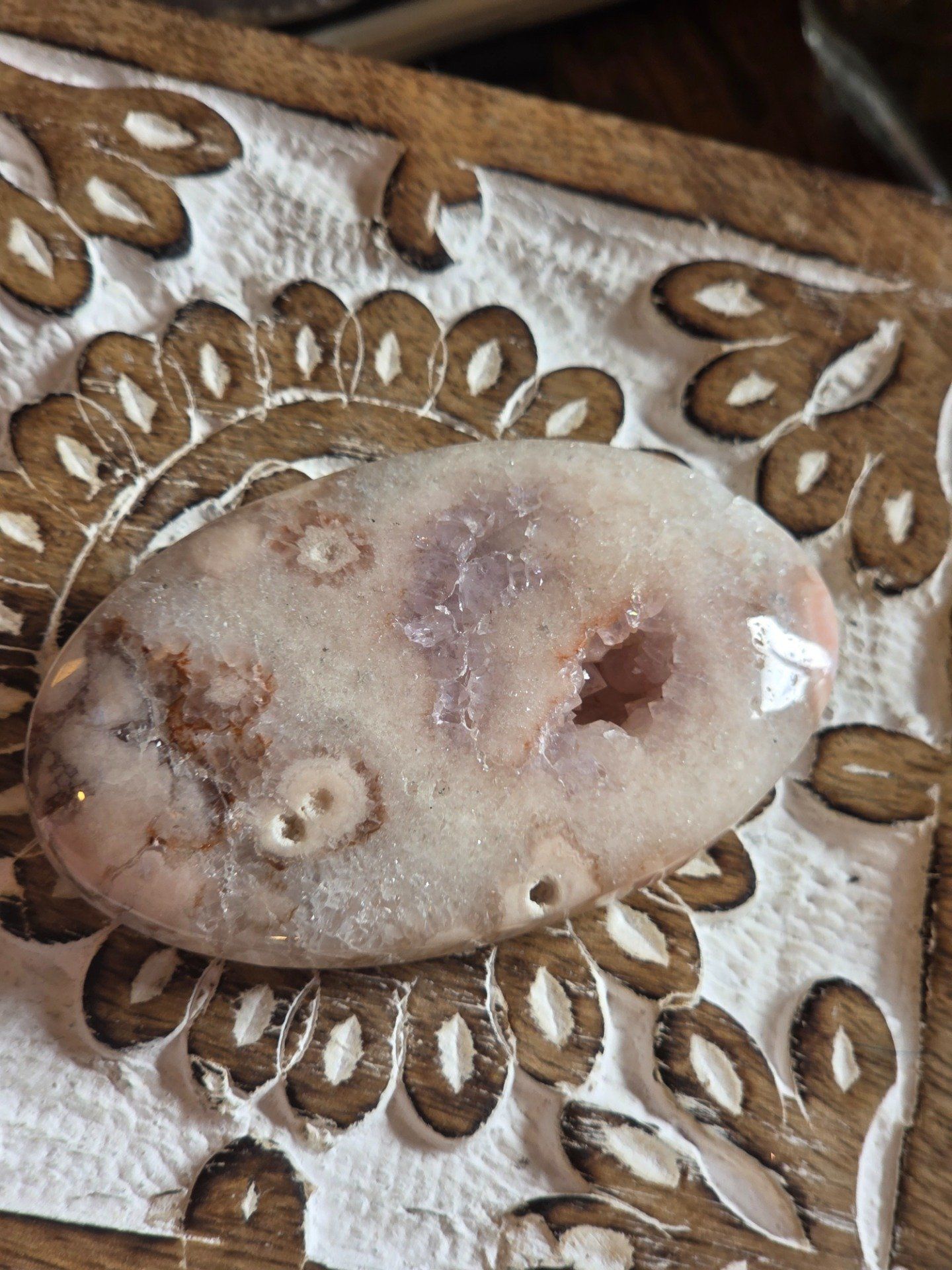 Galet De Paume Agate Fleur – Pierre Décorative Avec Druzy Naturelle