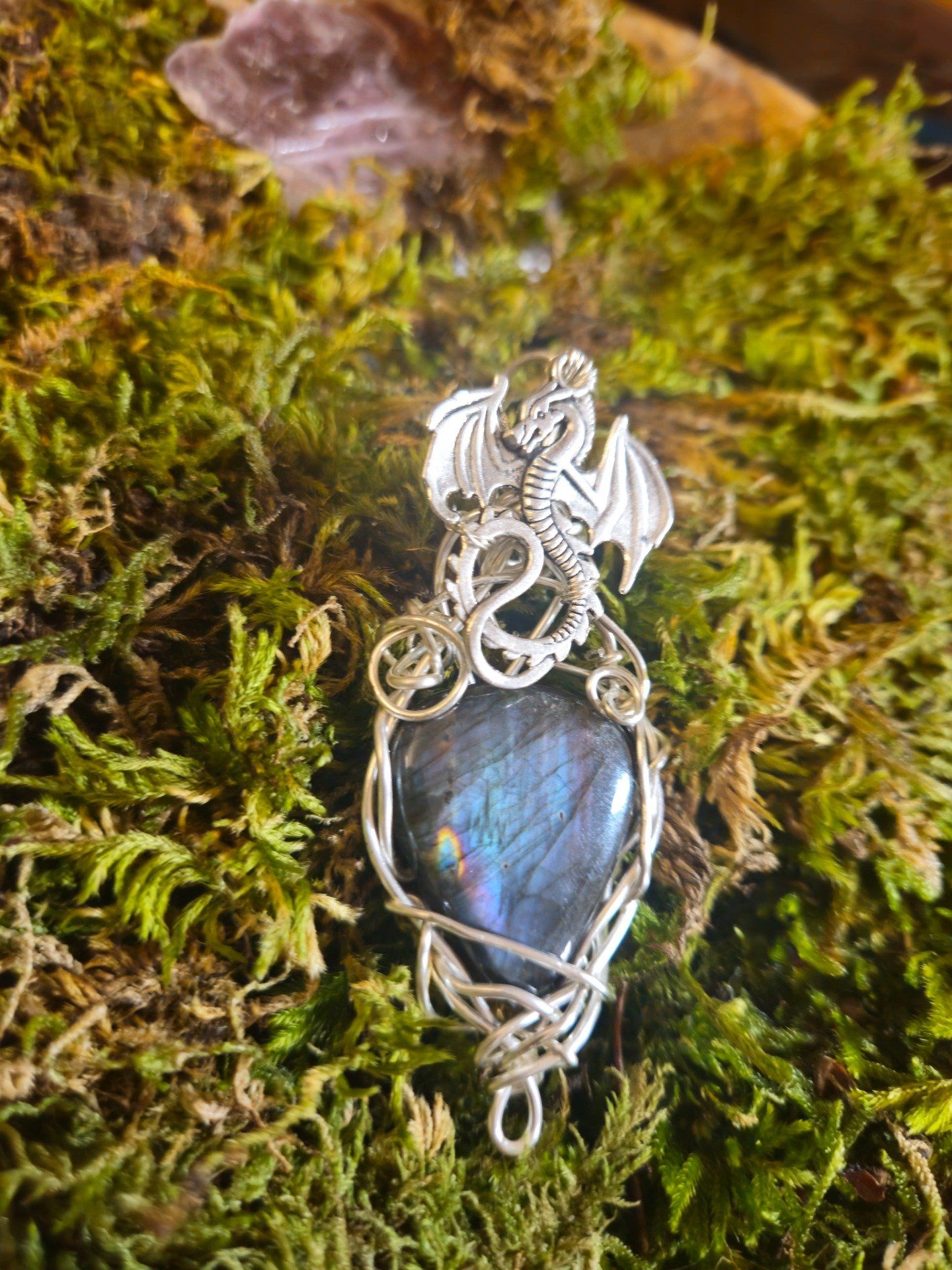 Amulette Labradorite spectrolite Dragon