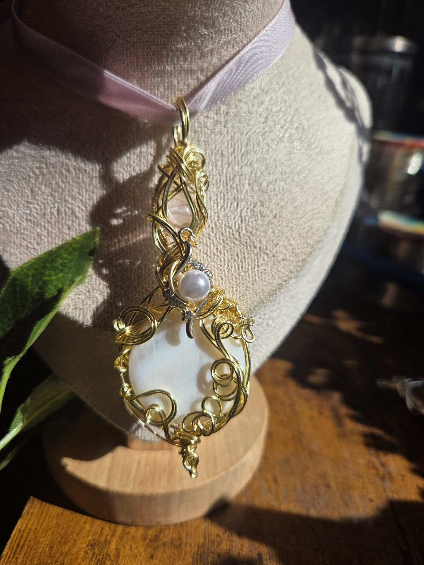 Amulette Légende d’amour : nacre et quartz rose