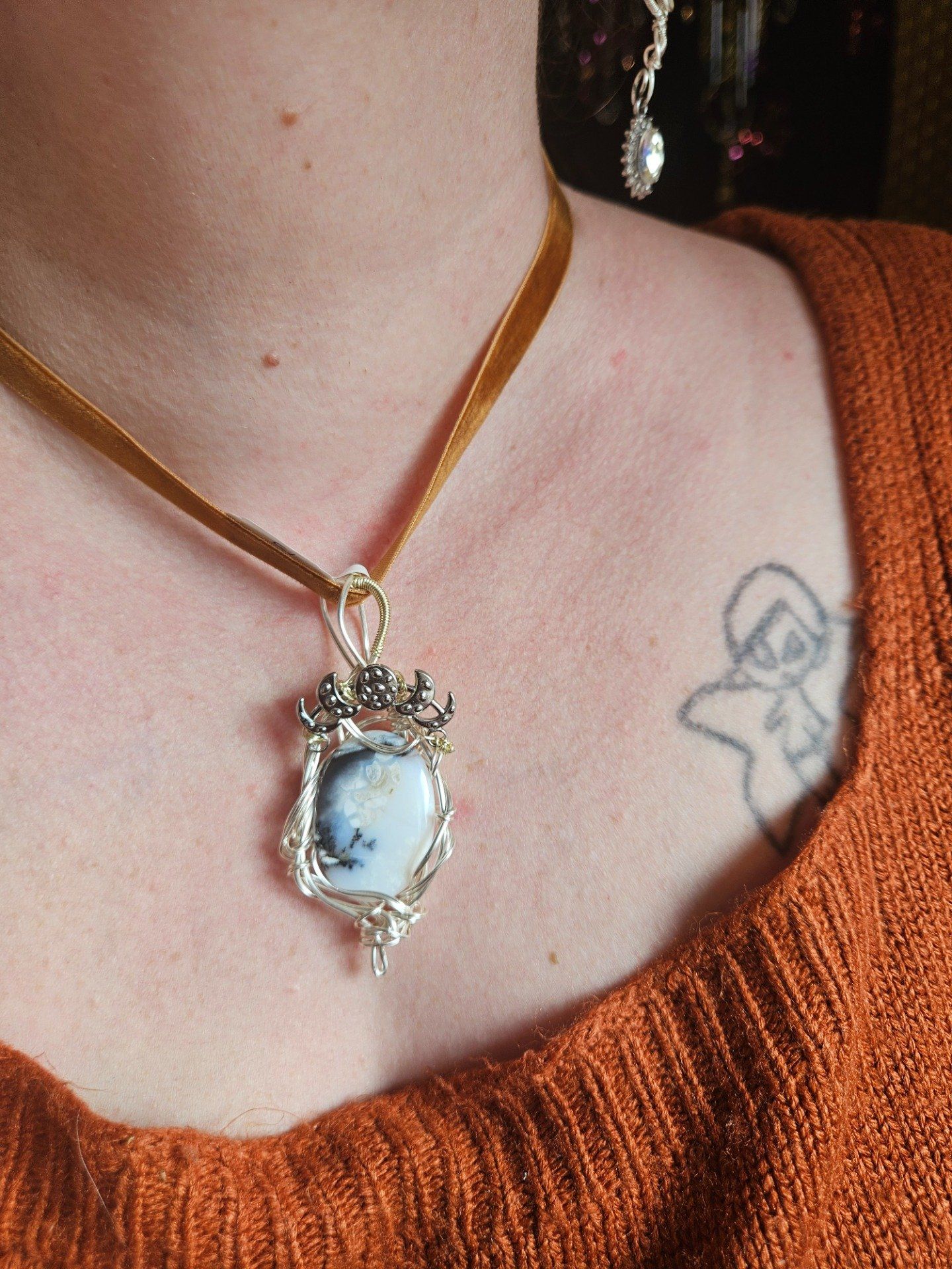 Amulette Merlinite (✨Opale Dendritique) Pierre de Magie et d’Équilibre✨
