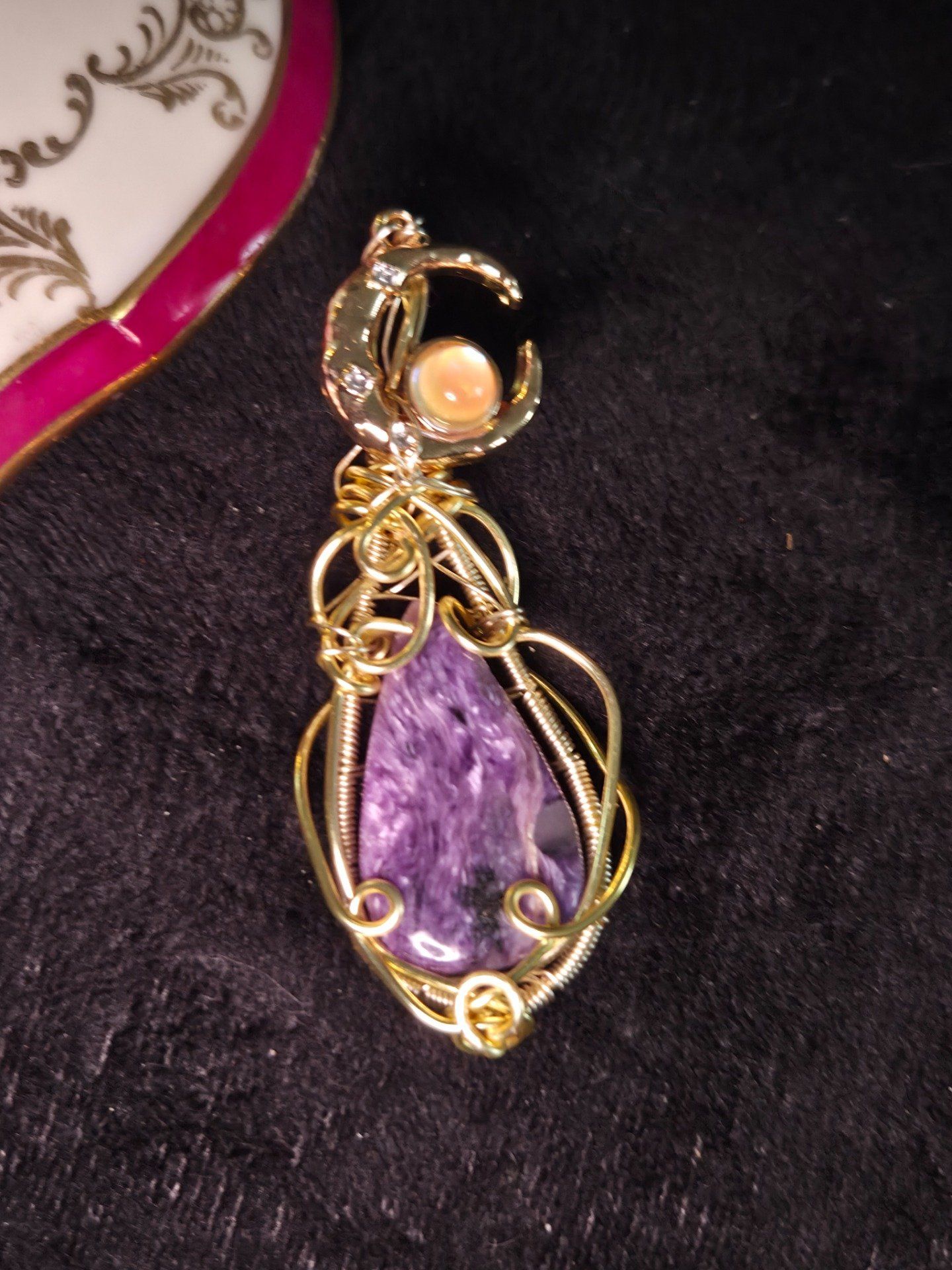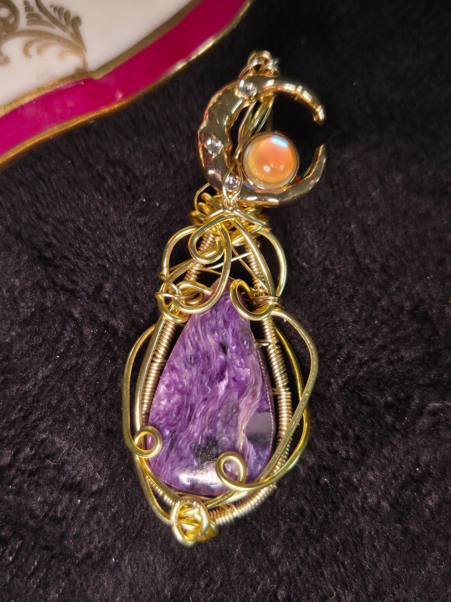 ✨ Amulette en Charoïte ,bijou Or– Pierre de Transformation & Libération ✨