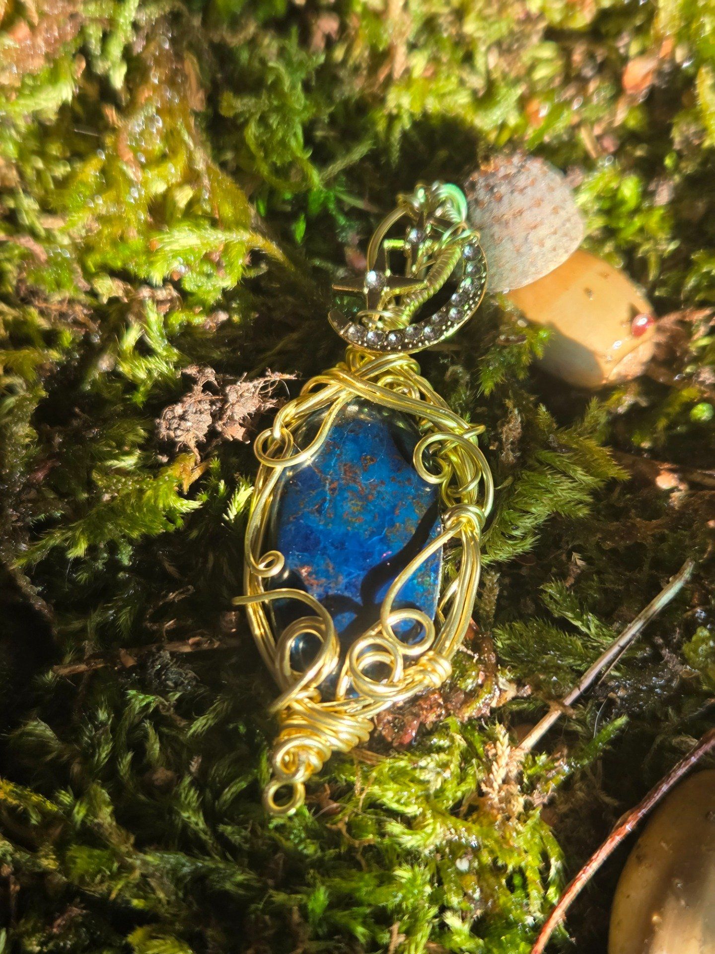 Azurite -Pendentif pierre bleu intense -Amulette Orcoeur cuivre