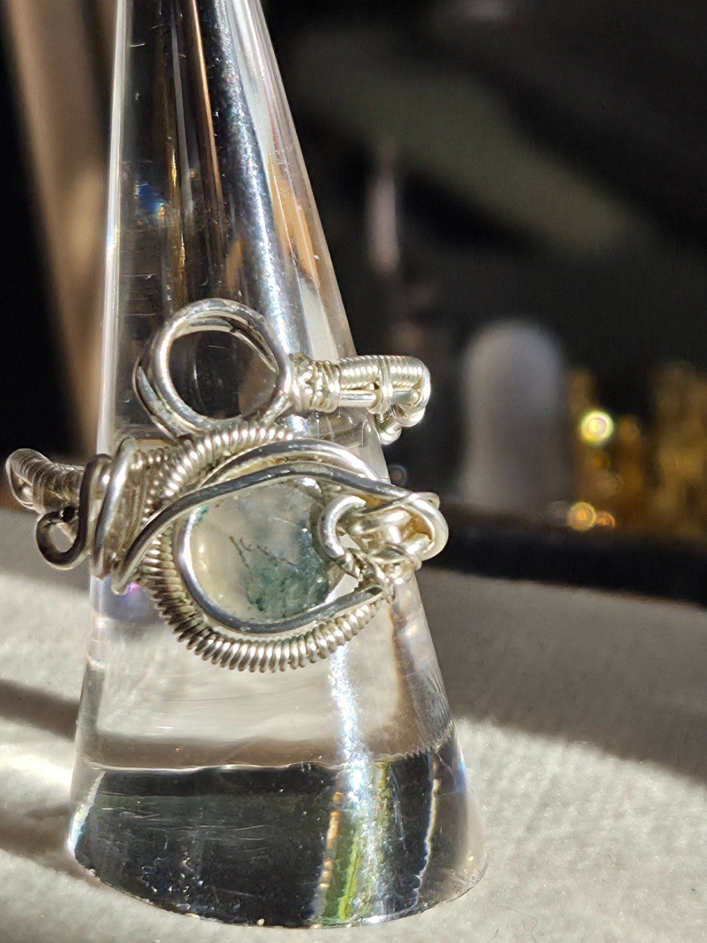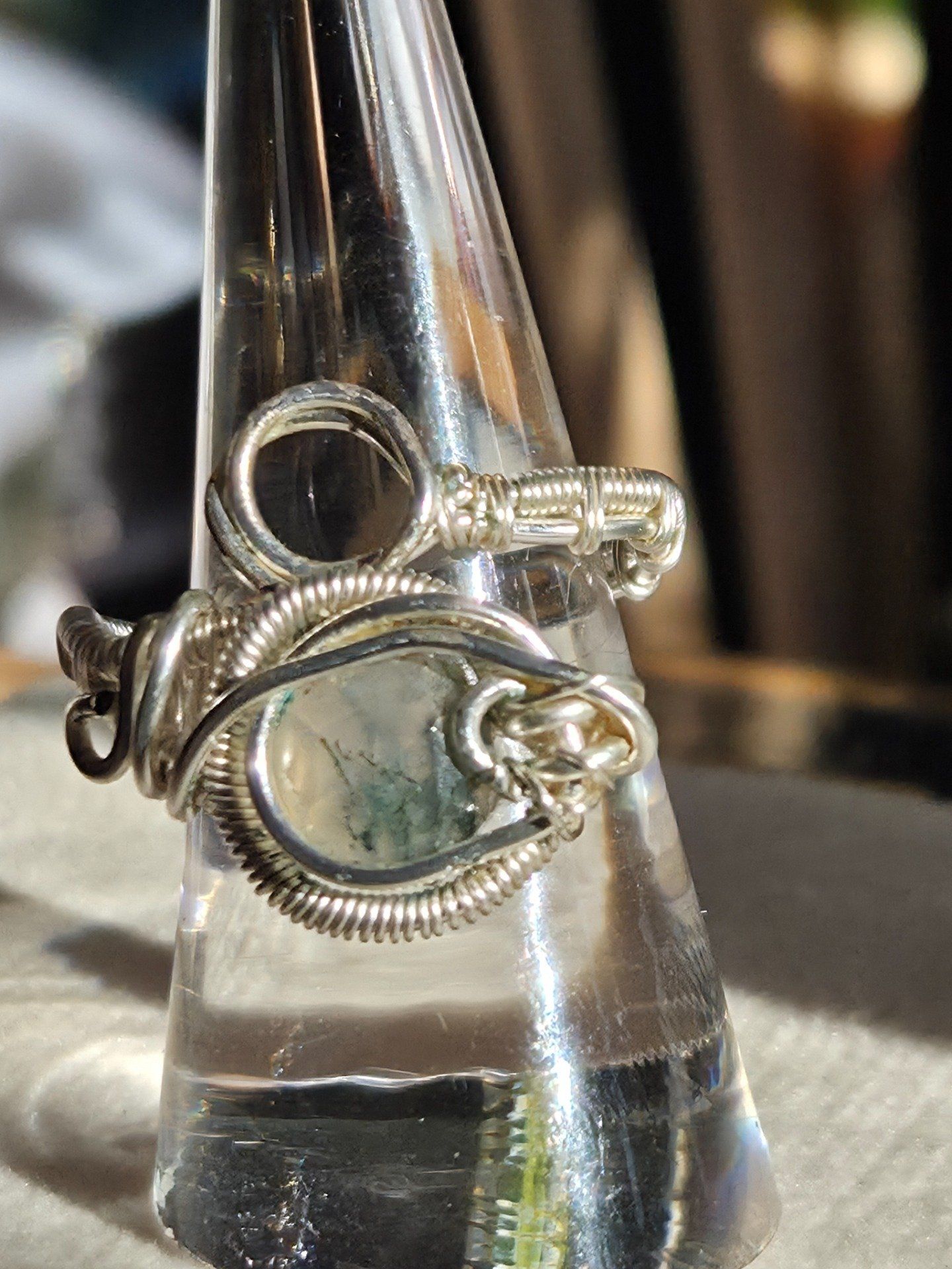 L'agate mousse , Bague Serpentine ( se ferme sur le haut )
