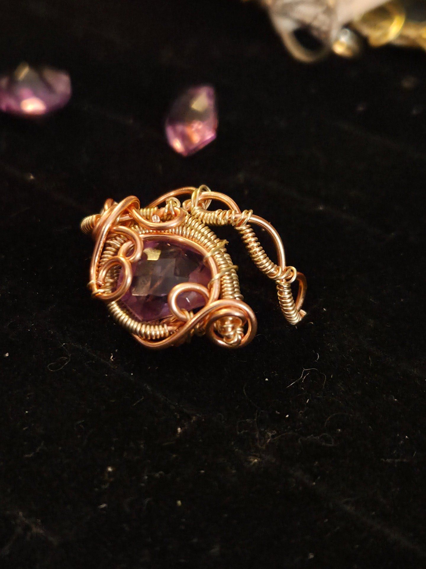 Chaque bague est façonnée à la main selon la technique du wire wrapping, mettant en valeur les nuances naturelles violettes et dorées de la pierre. Une pièce unique qui accompagne celles et ceux en quête d’évolution, d’abondance et d’harmonie profonde.