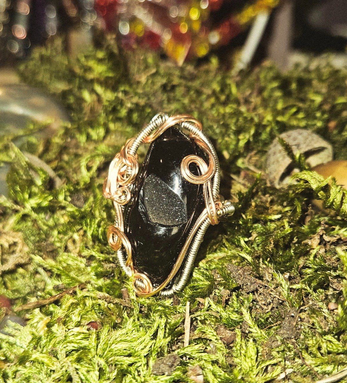 Bague Onyx Noire Druzy - courrone ajustable