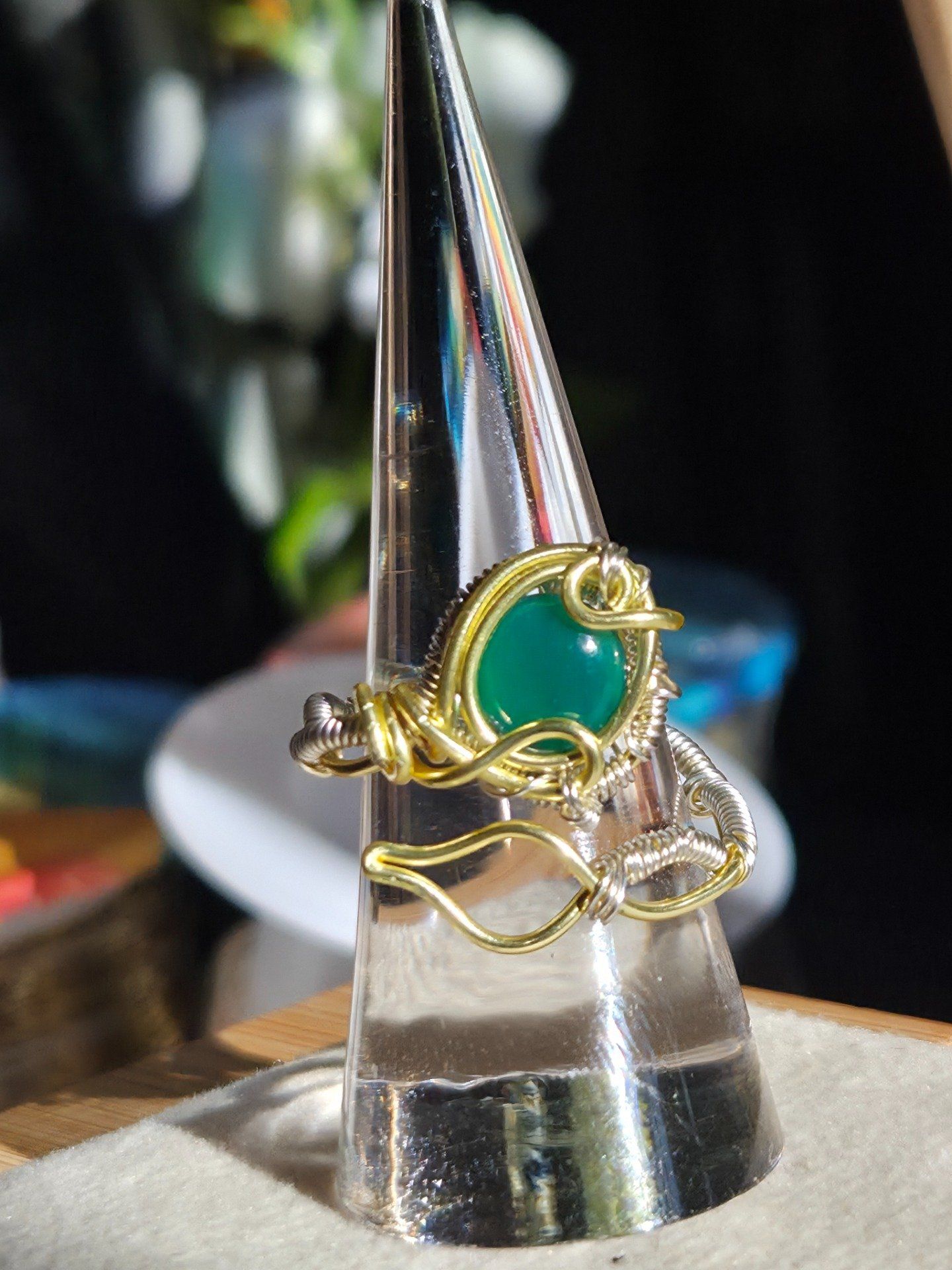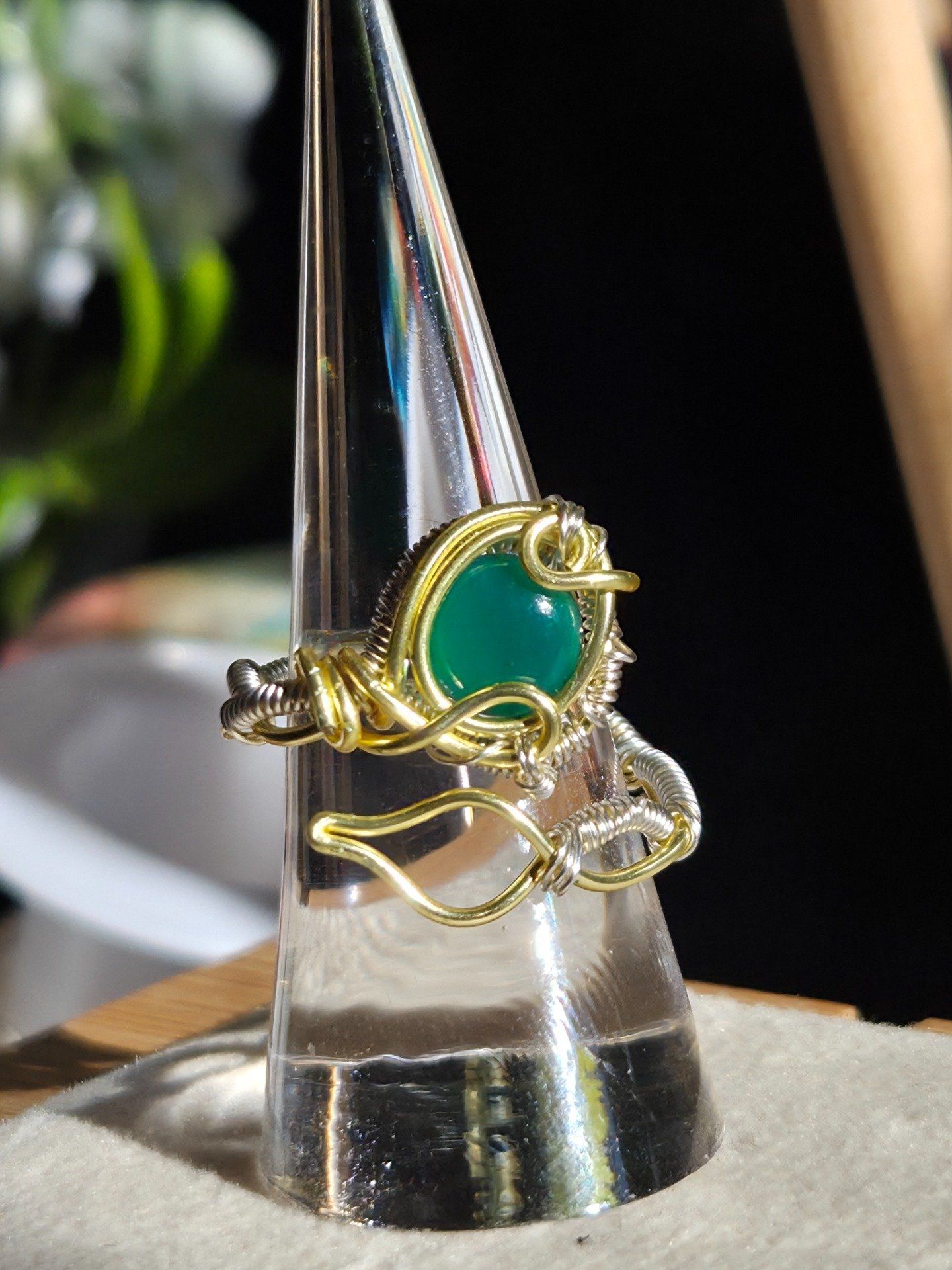 - Monture : Bague ajustable en fil de cuivre recouvert d'argent
