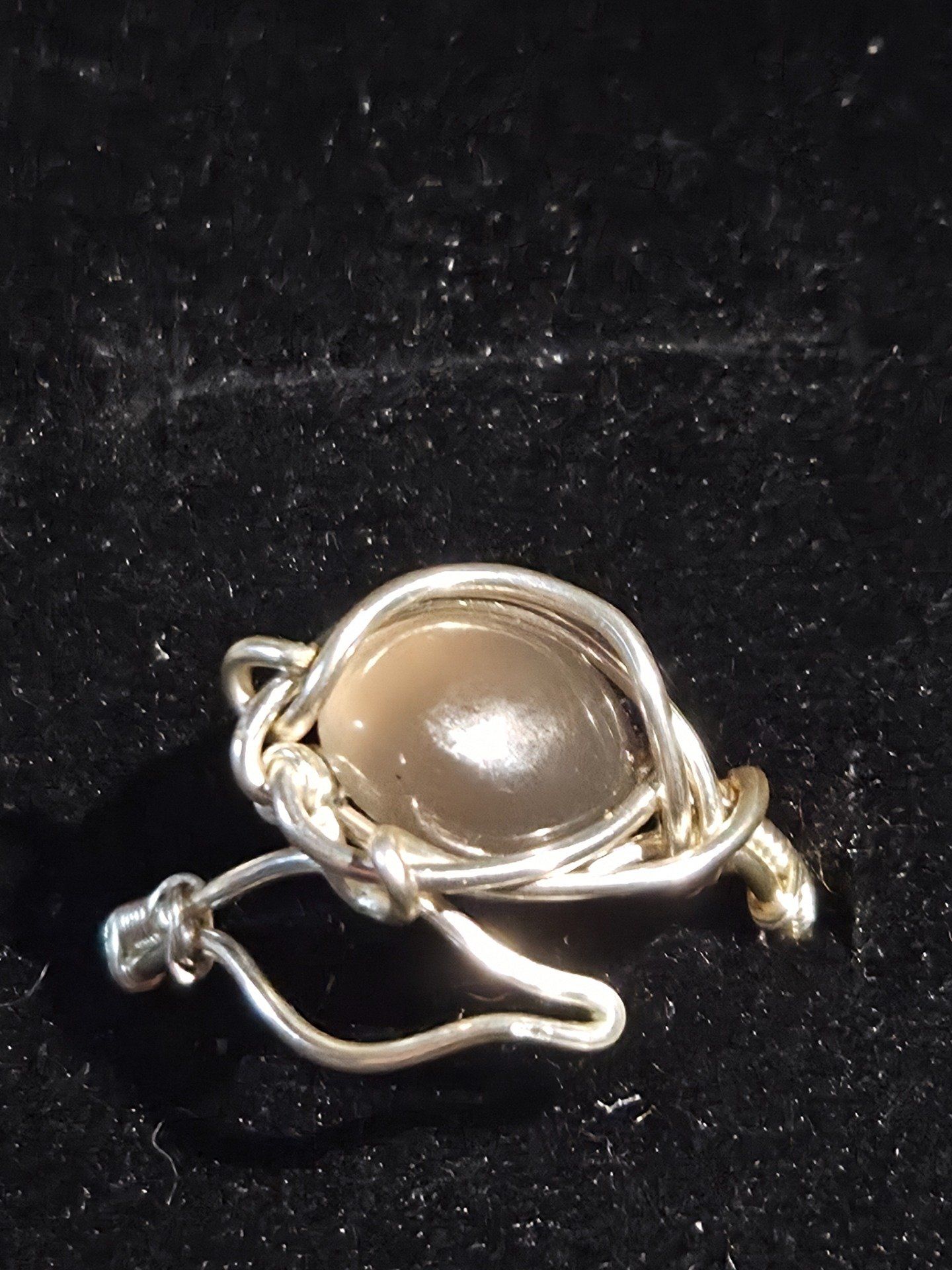 Bague Pierre de lune Noire - hecatolite - ajustable