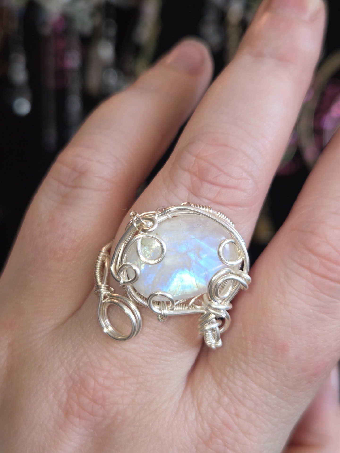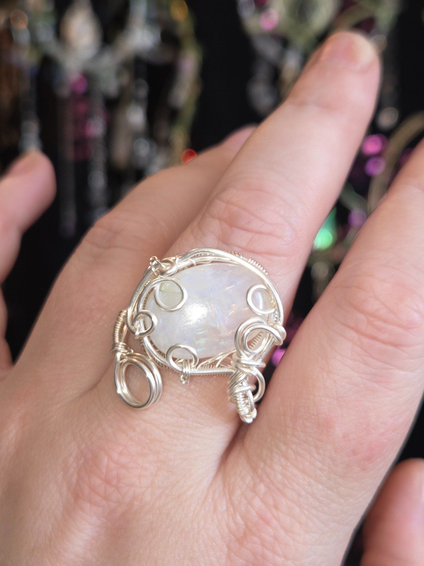 Bague Pierre de Lune Arc-en-Ciel – Péristérite Ajustable