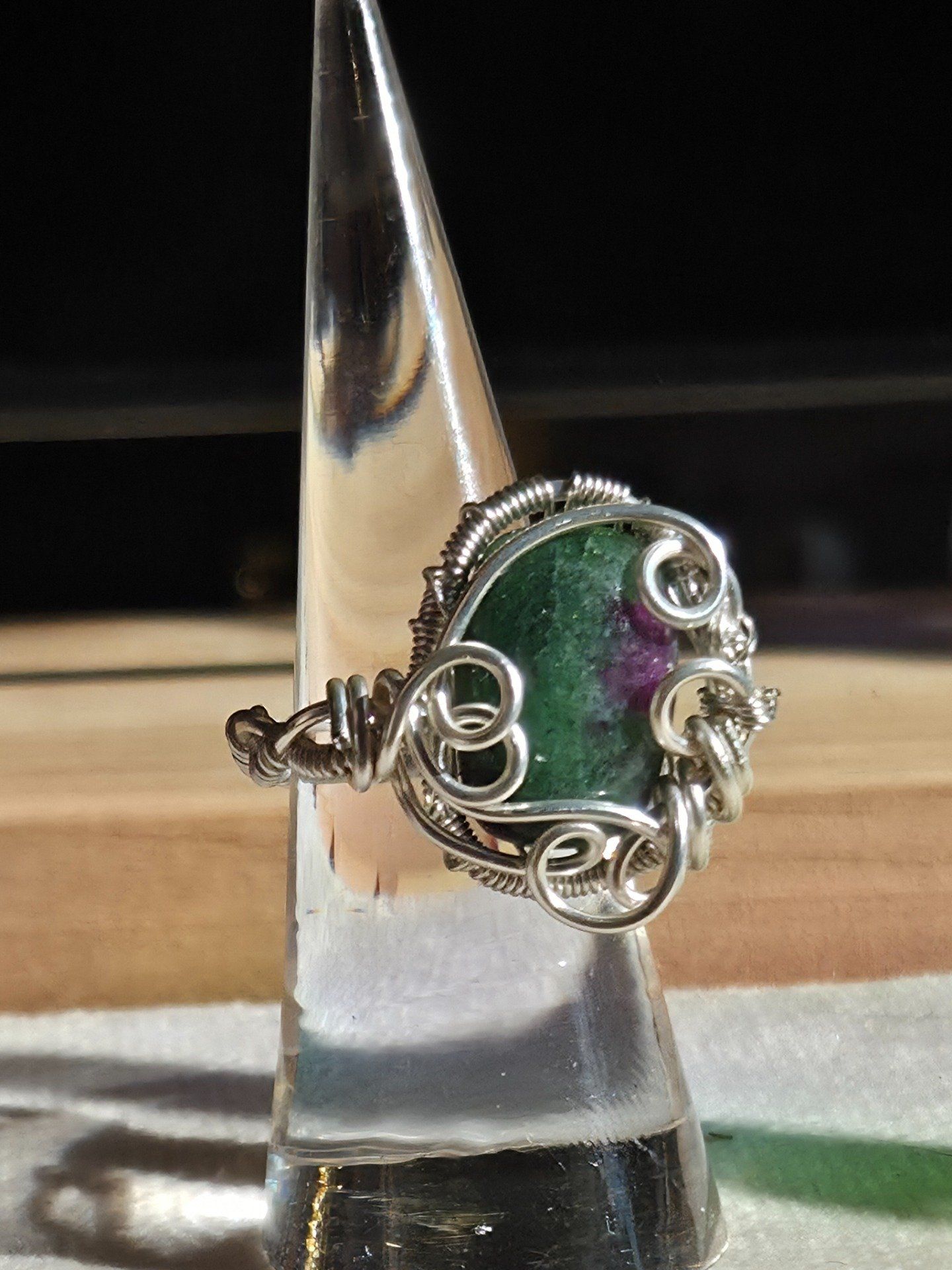 Découvrez notre bague en Rubis sur Zoïsite, un bijou artisanal unique qui combine l’énergie vibrante du rubis et les vertus apaisantes de la zoïsite.