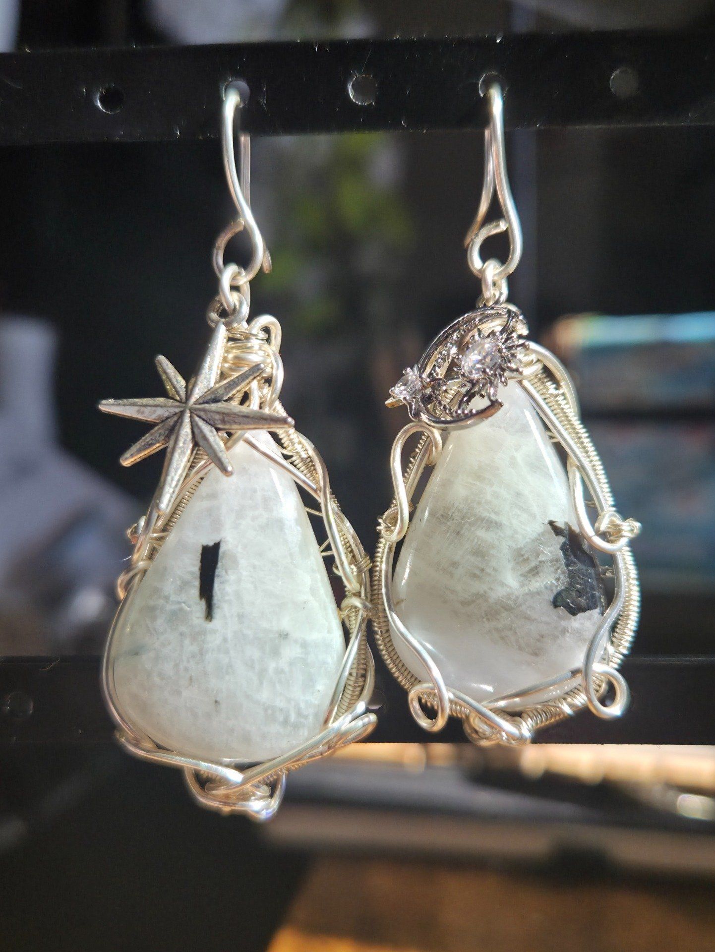 Boucle d’oreille argent Pierre de lune ✨ Péristerite ✨