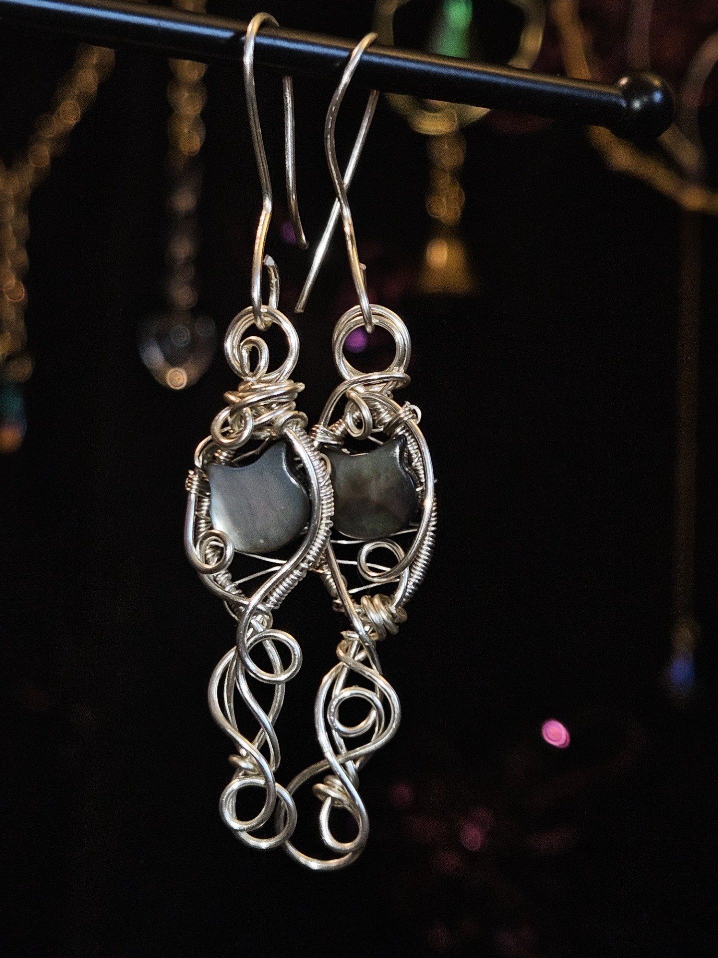 Boucle d'oreille- chat Nacre Noire