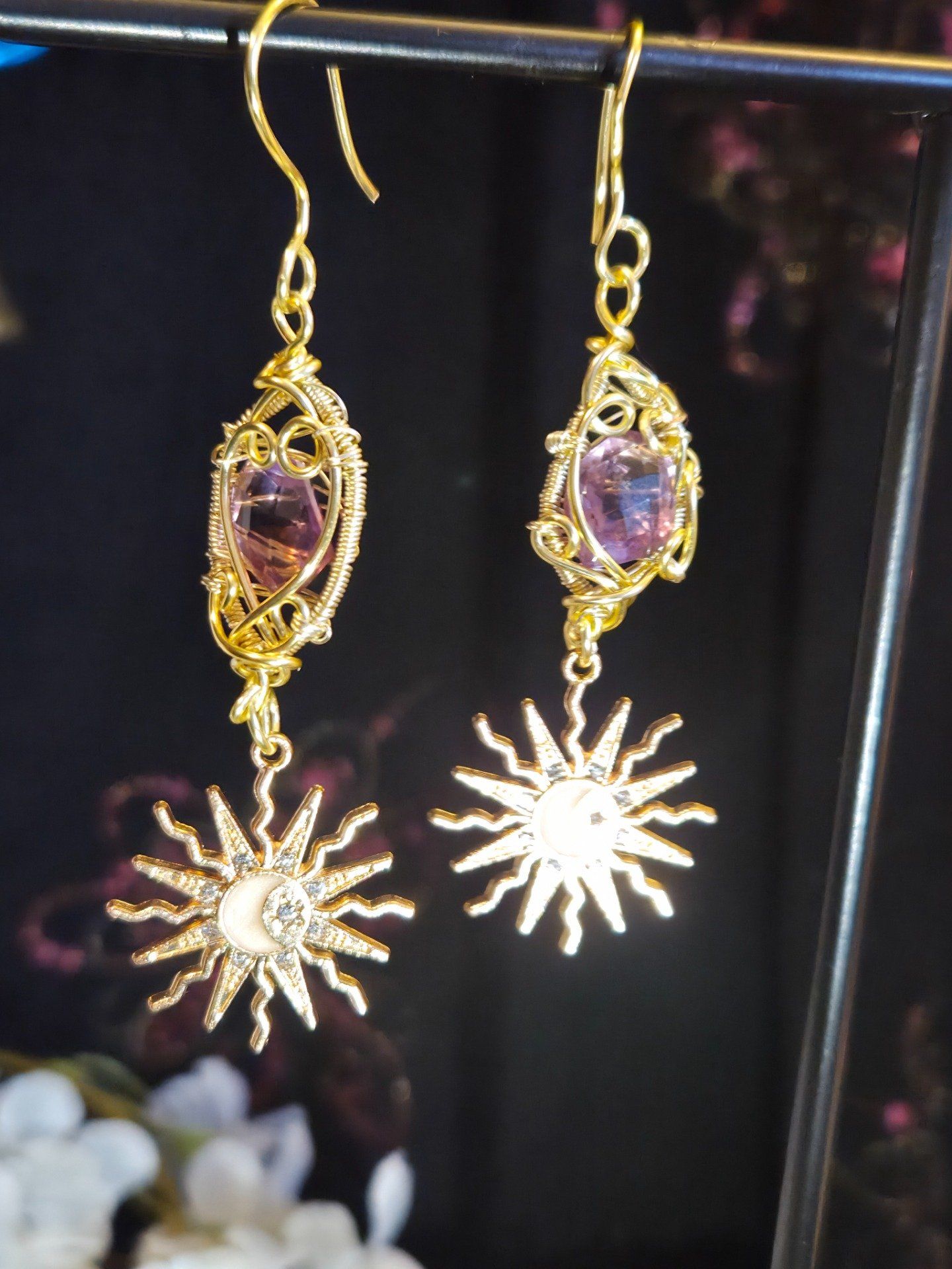 façonnée à la main selon la technique du wire wrapping, mettant en valeur les nuances naturelles violettes et dorées de la pierre. Une paire unique qui accompagne celles et ceux en quête d’évolution, d’abondance et d’harmonie profonde.