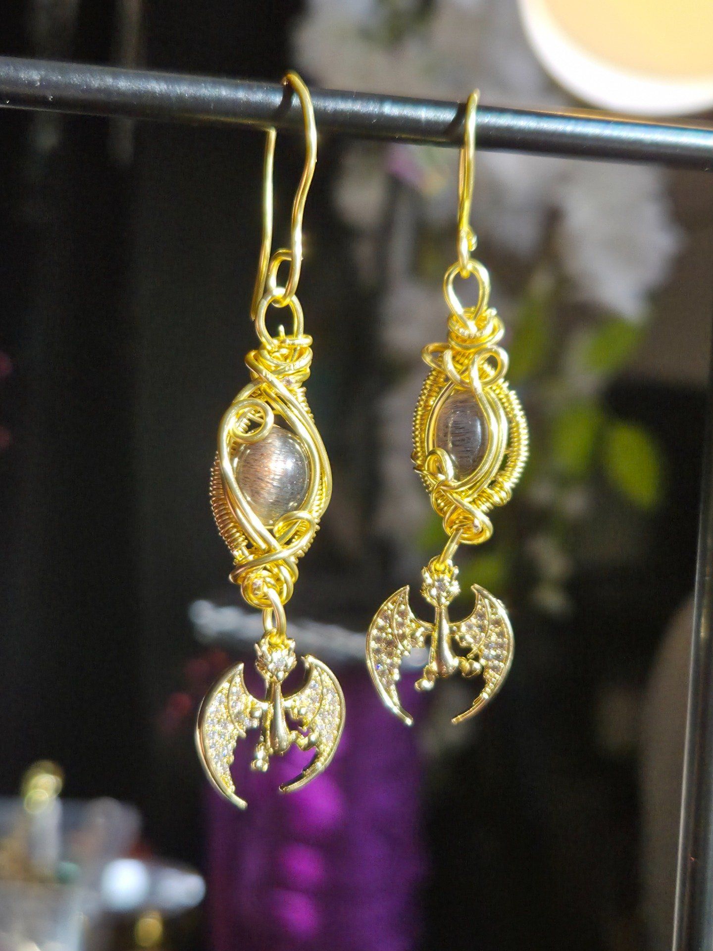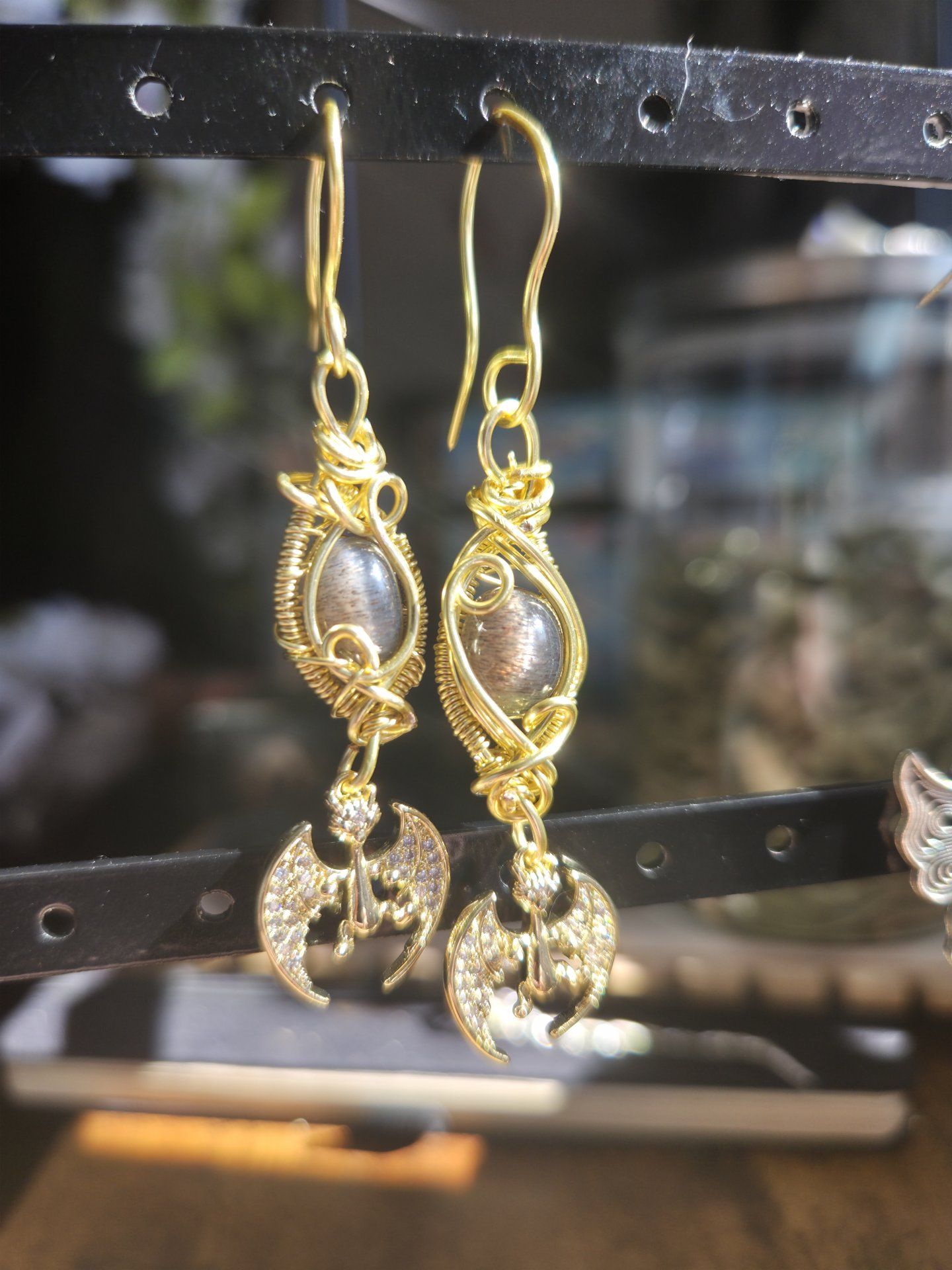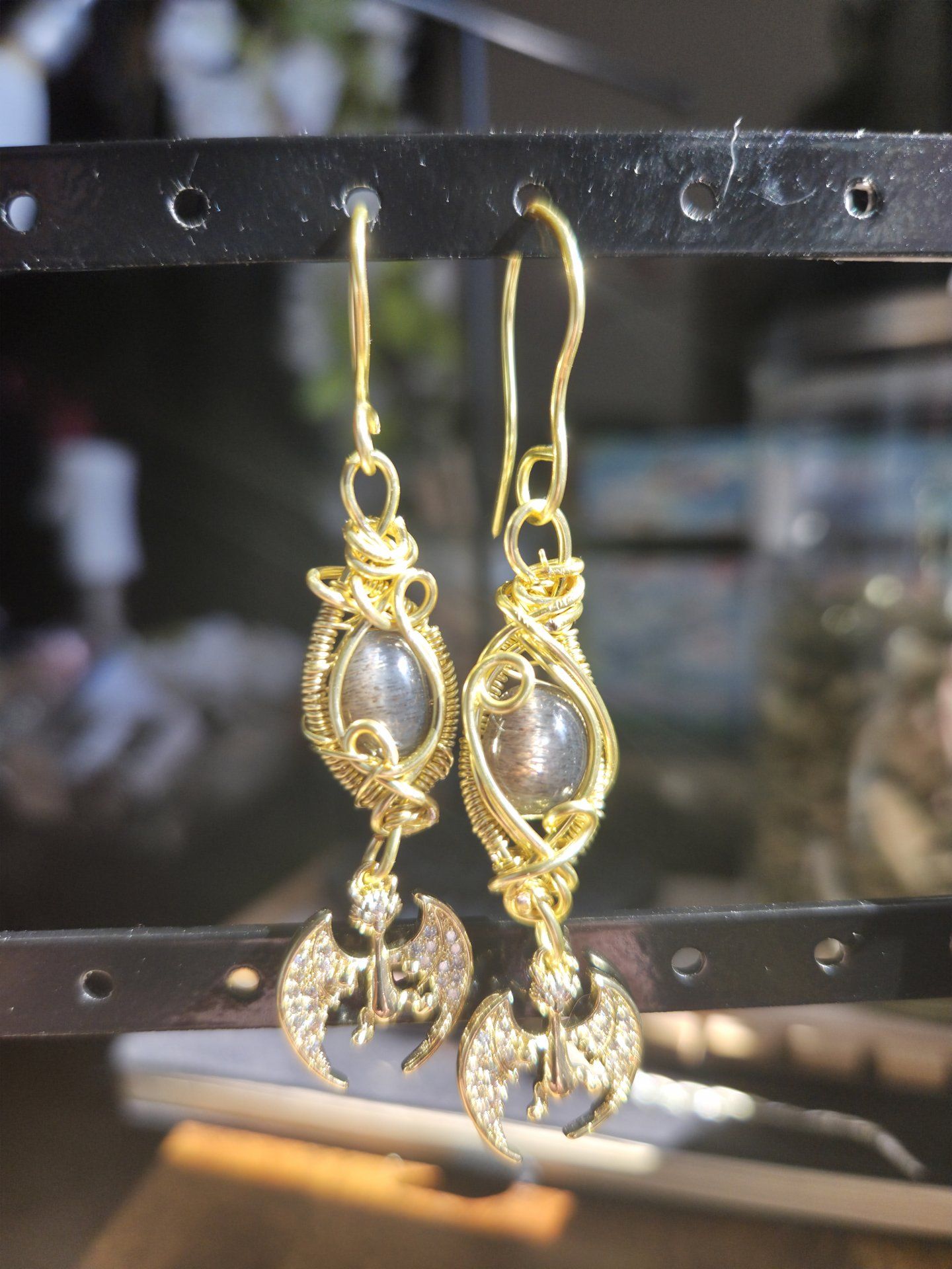 Boucle d'oreille Pierre de soleil Noire- confiance et joie