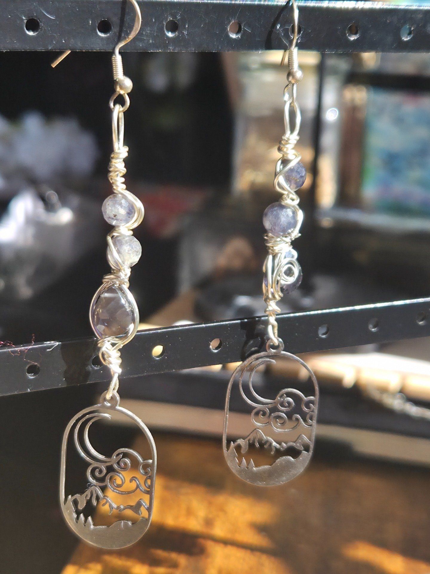 Boucle d’oreille en iolite (cordierite) pour éveil spirituel, clarté mentale et harmonie émotionnelle. Favorise amour de soi, pardon et intuition.