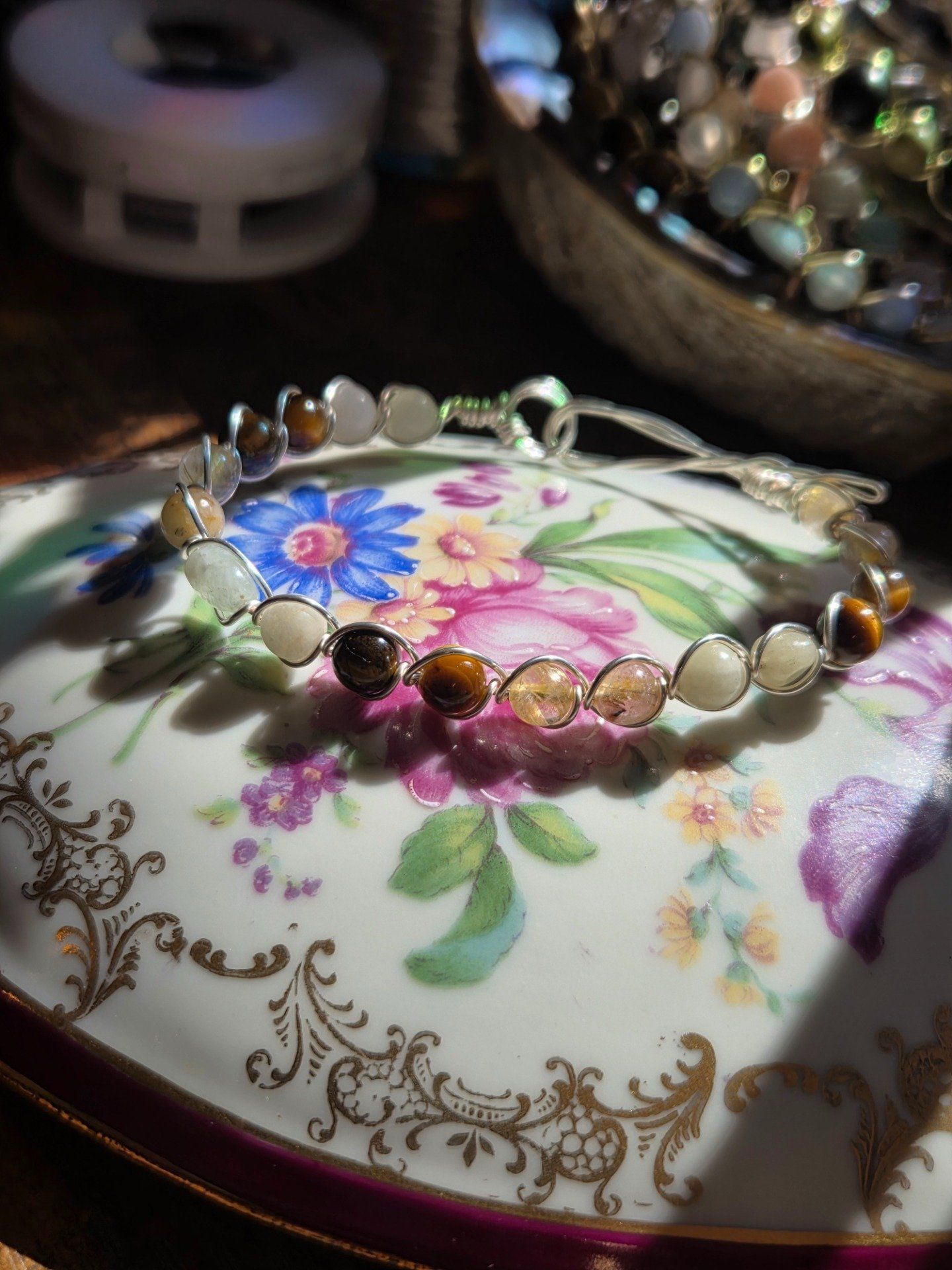 Cet bracelet est réalisée à partir d’une pierre naturelle aux vertus apaisantes, montée sur un fil de cuivre recouvert d’argent, or , cuivre plaquée etc.