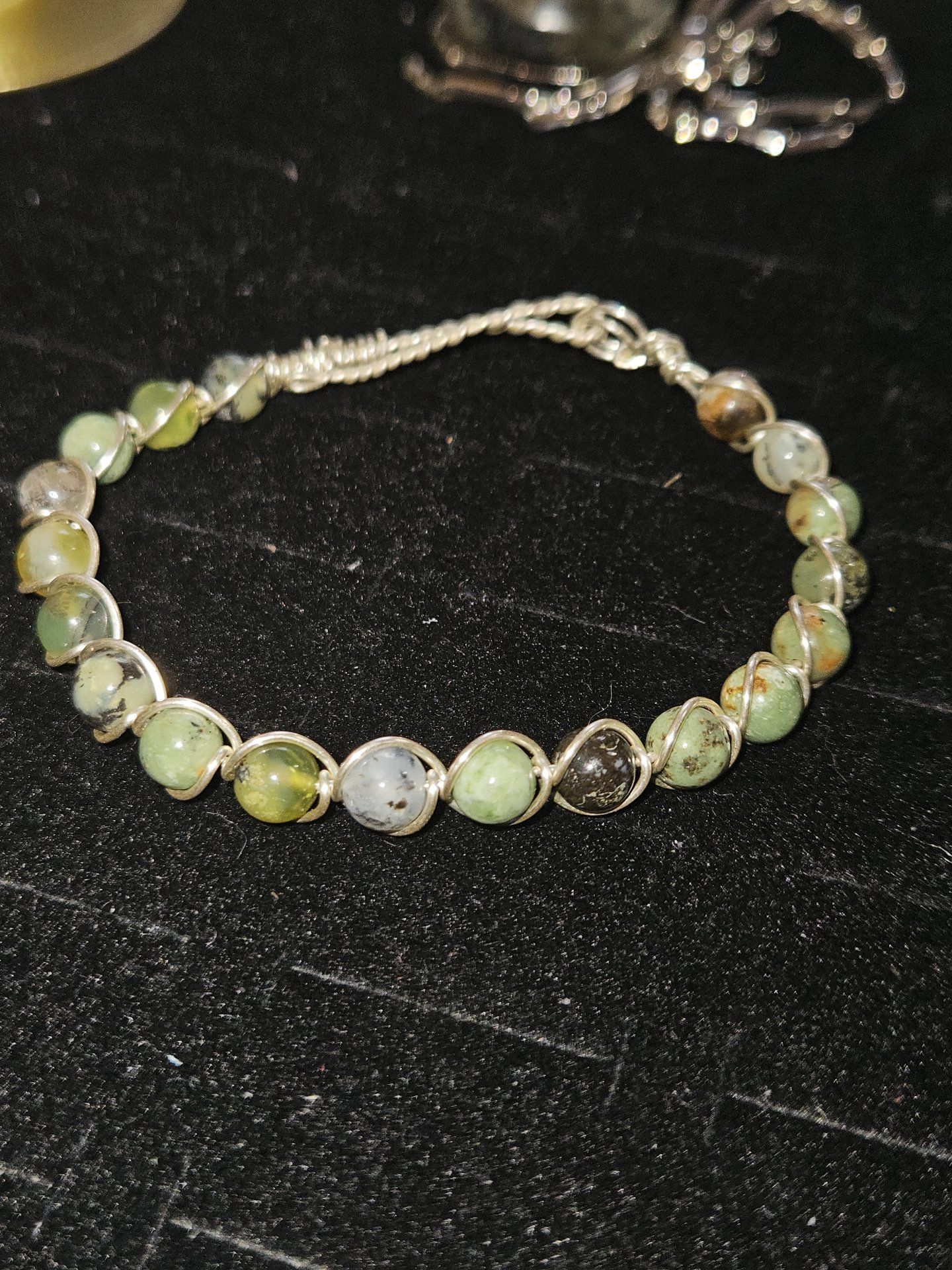 Plongez dans l’énergie douce et purifiante de l’Opale Verte des Andes, une pierre fine d’un vert apaisant, symbole d’espoir, de guérison émotionnelle et de renouveau intérieur. Ce bracelet artisanal, monté à la main, est un allié précieux pour retrouver l’harmonie du cœur et du corps.