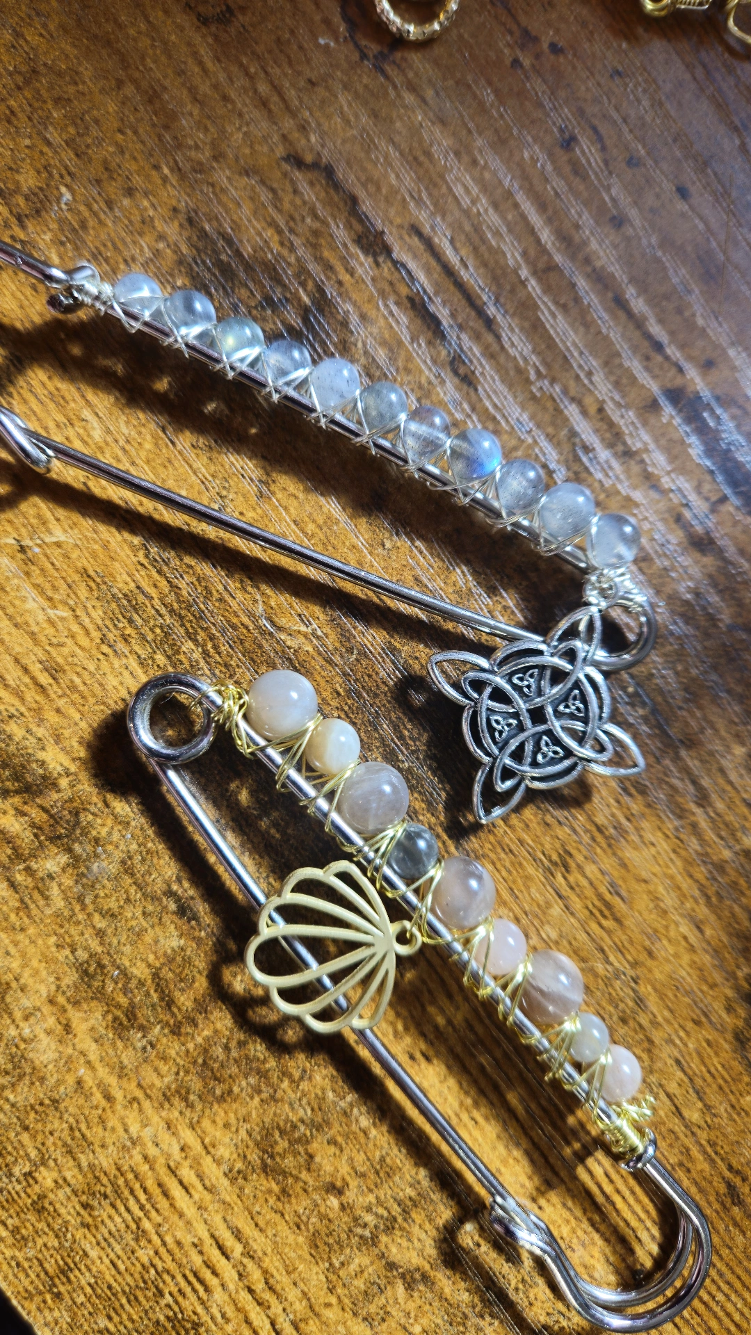 Les broches perles associent deux perles fines en pierre naturelle de votre choix, pour une touche de douceur et d’énergie ou vous en avez besoin.