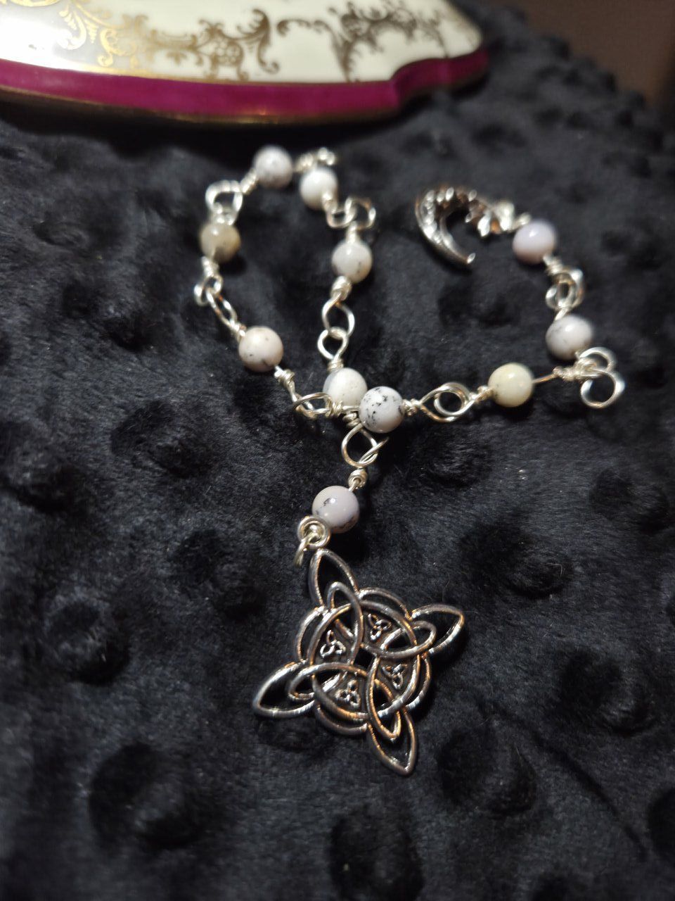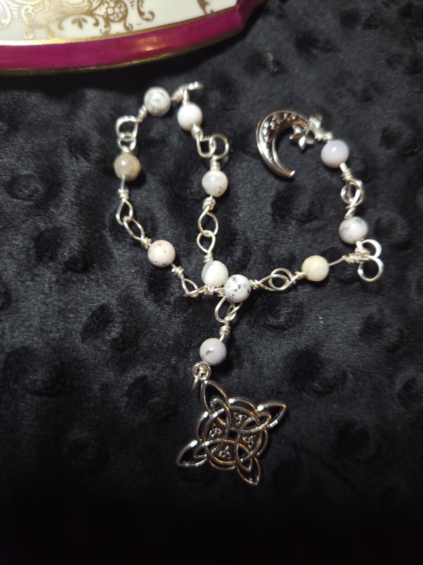 Chapelet de priére Argent Cœur Cuivre en Merlinite (Opale Dendritique) – Pierre de Magie & d’Équilibre