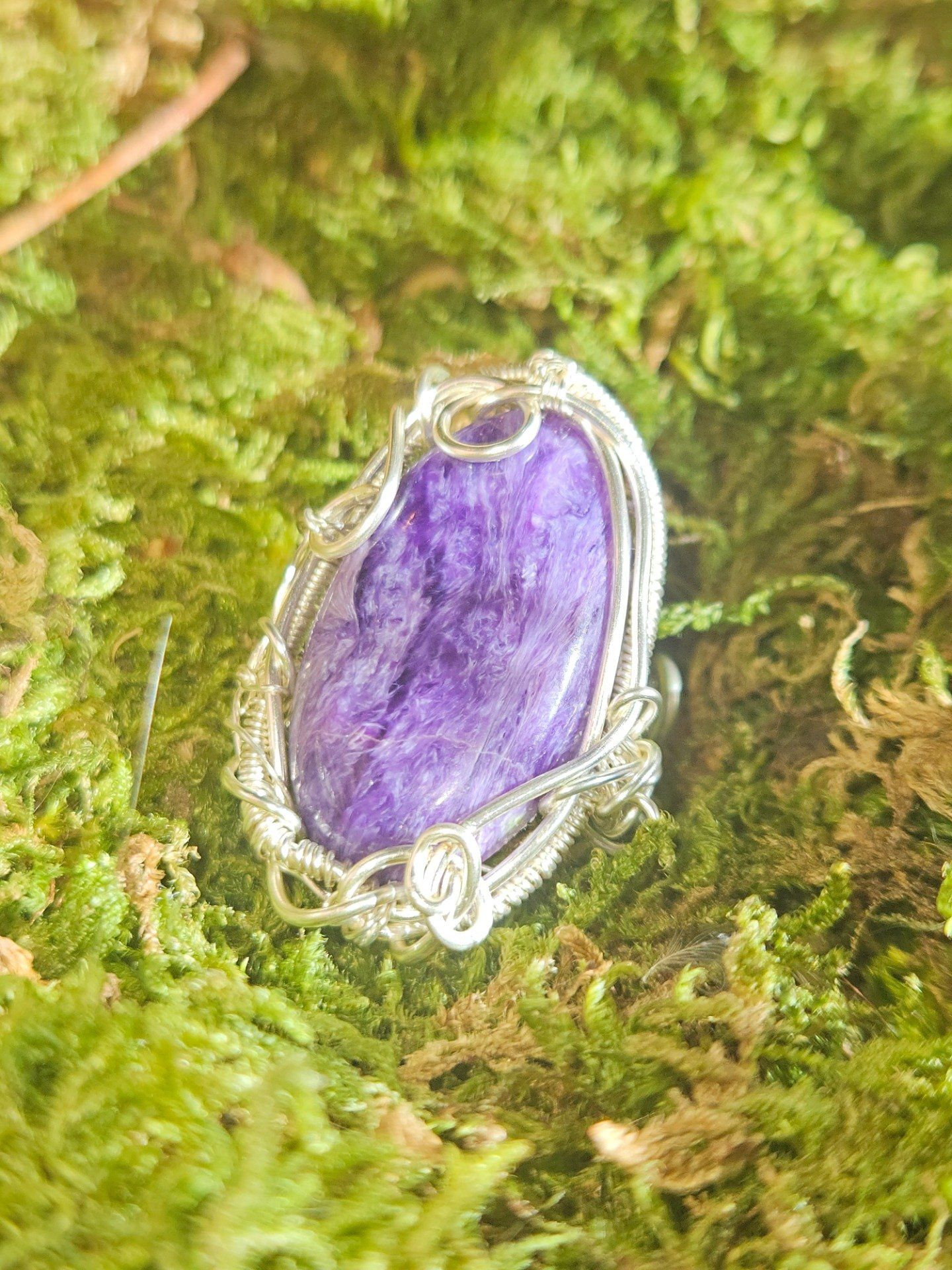 ✨ Amulette bague en Charoïte – Pierre de Transformation et de Libération ✨