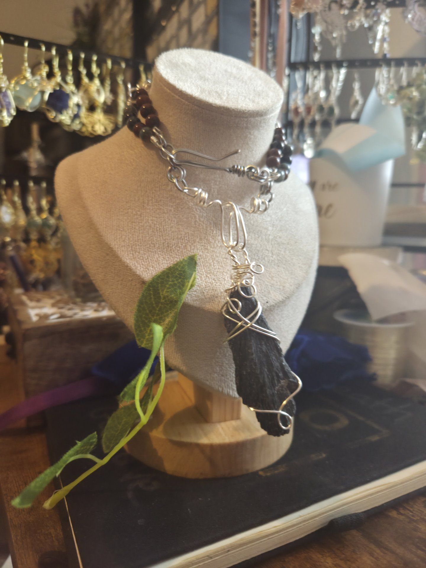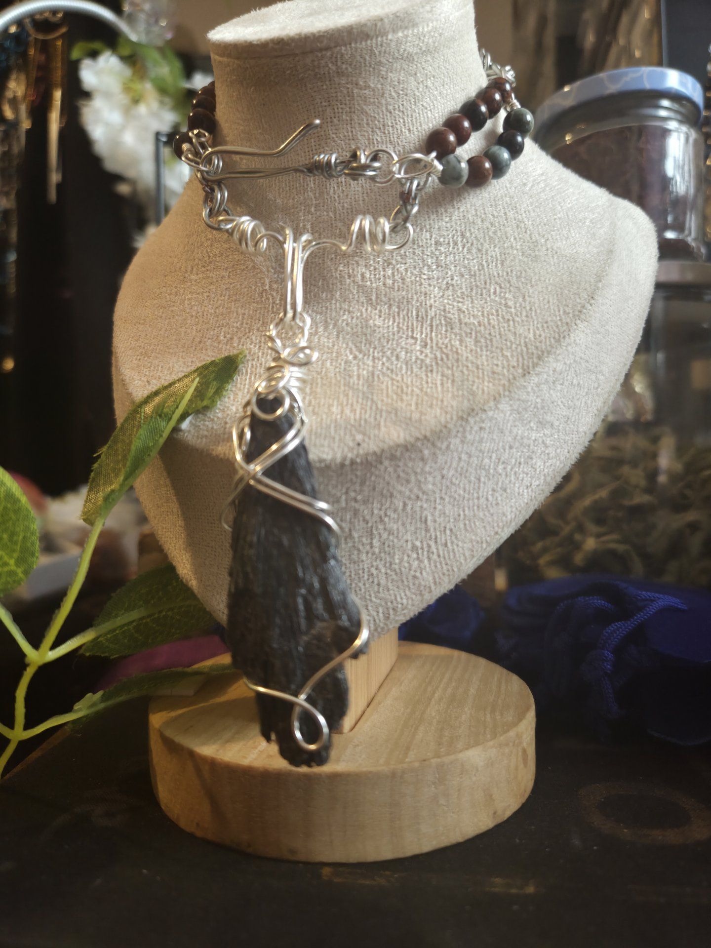 Ce choker associe le dysthène noir, l’obsidienne mahogany et l’œil d’aigle pour créer un bijou à l’énergie profonde. Il accompagne celles et ceux qui recherchent protection, ancrage et clarté dans leur quotidien.