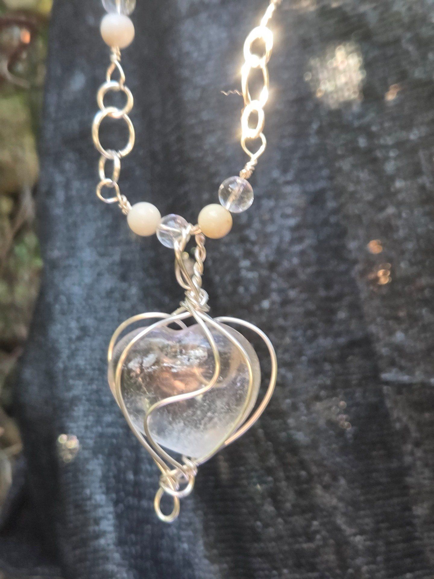 Collier Cœur Cristal de Roche, Opale & Quartz – Énergie, Amour & Clarté