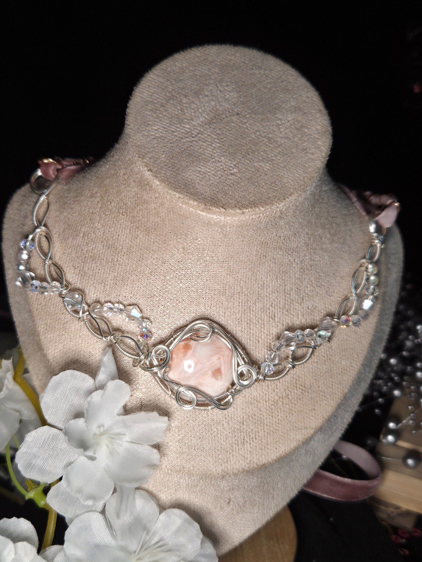 Collier Constellation De La Vierge – Scolécite Rose Naturelle