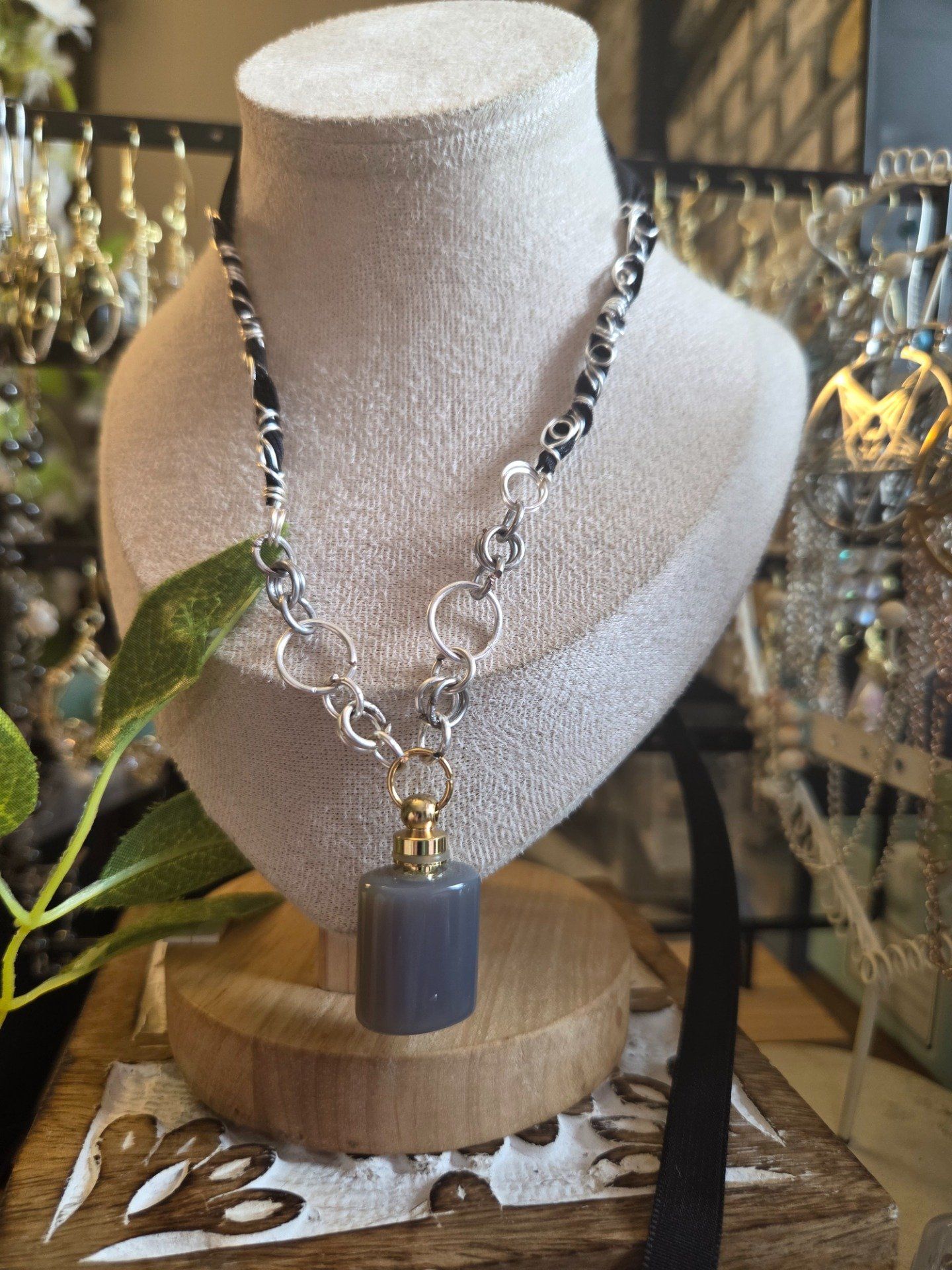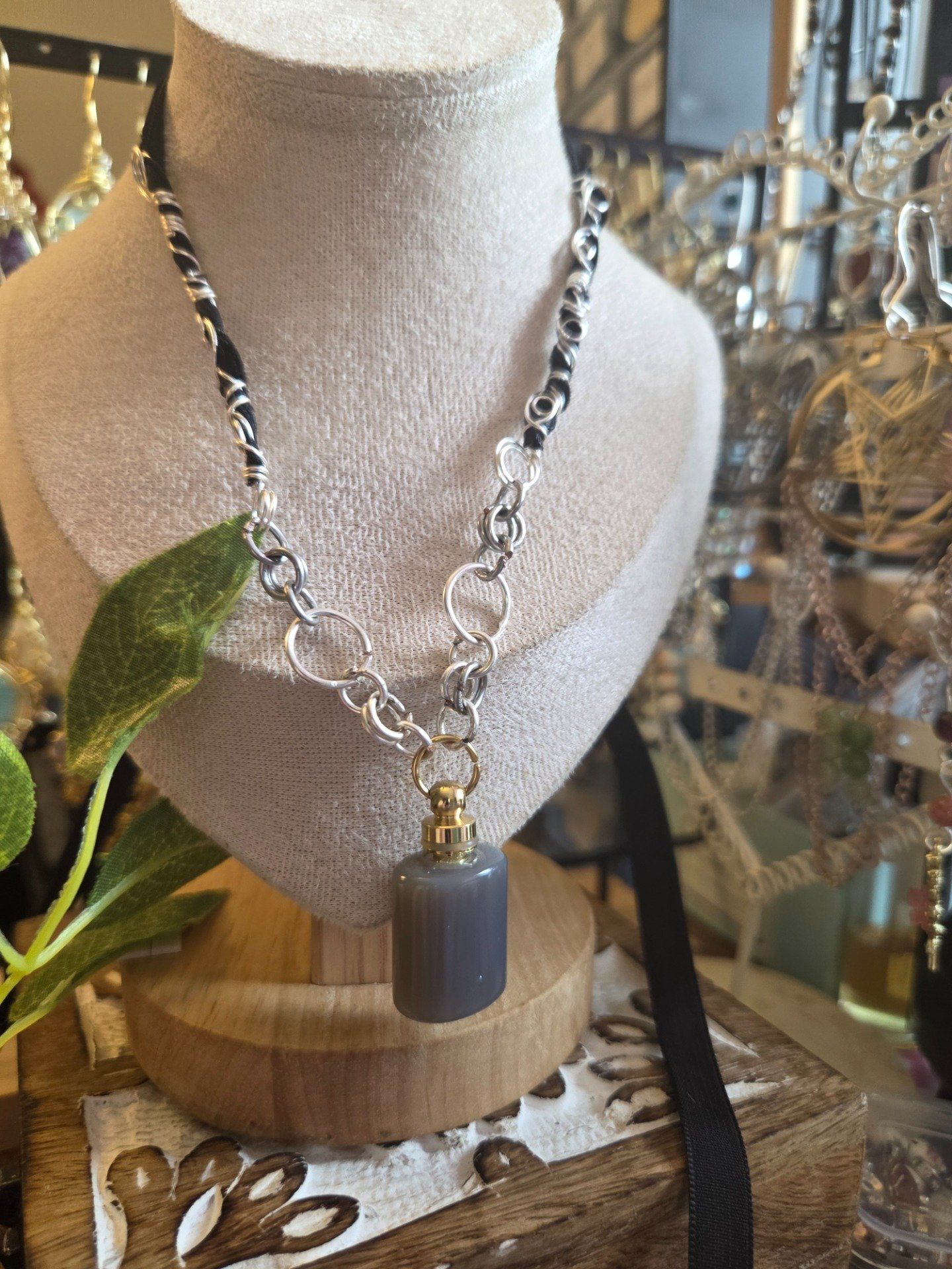 Collier Fiole Agate Grise – Équilibre, Apaisement & Élixir