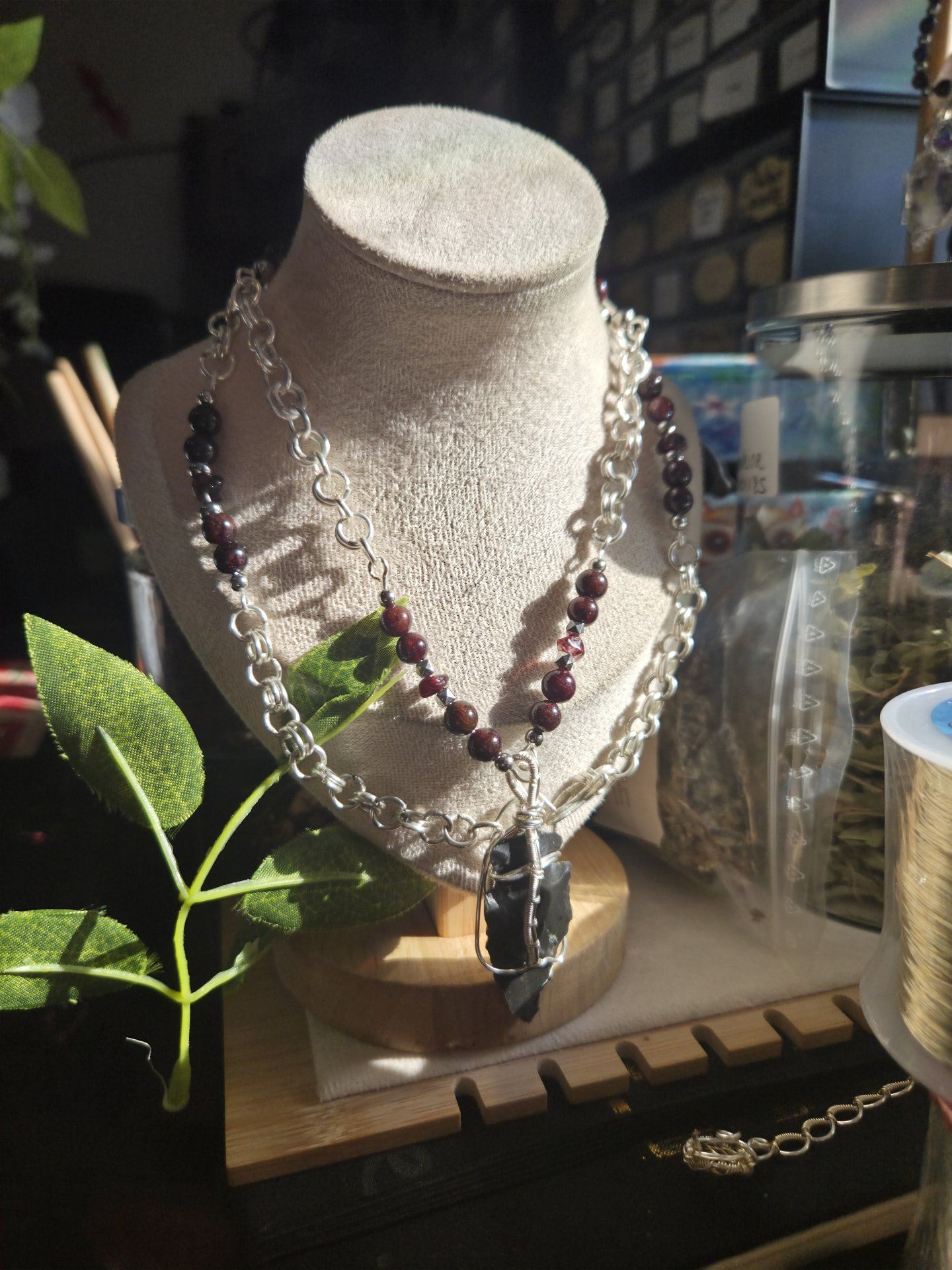 Collier grenat silex Hematite