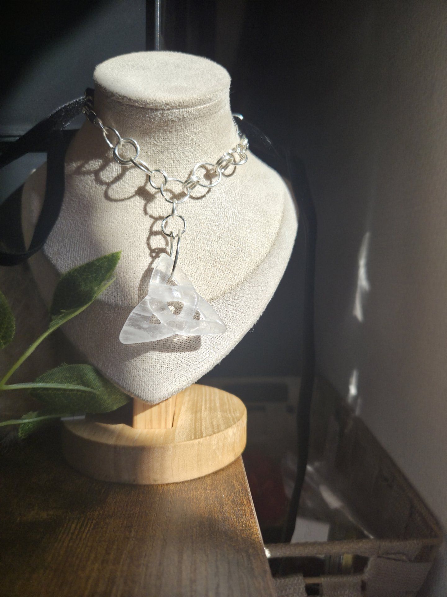 🎄 Pendentif Légende de Noël – Cristal de Roche, Argent & Cœur Cuivre