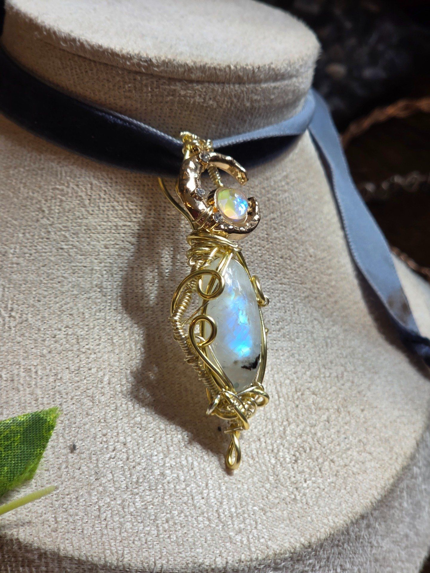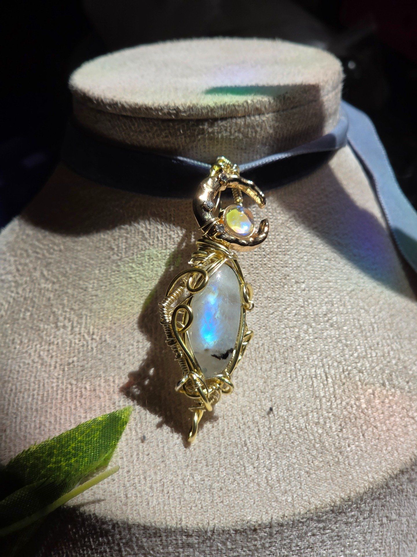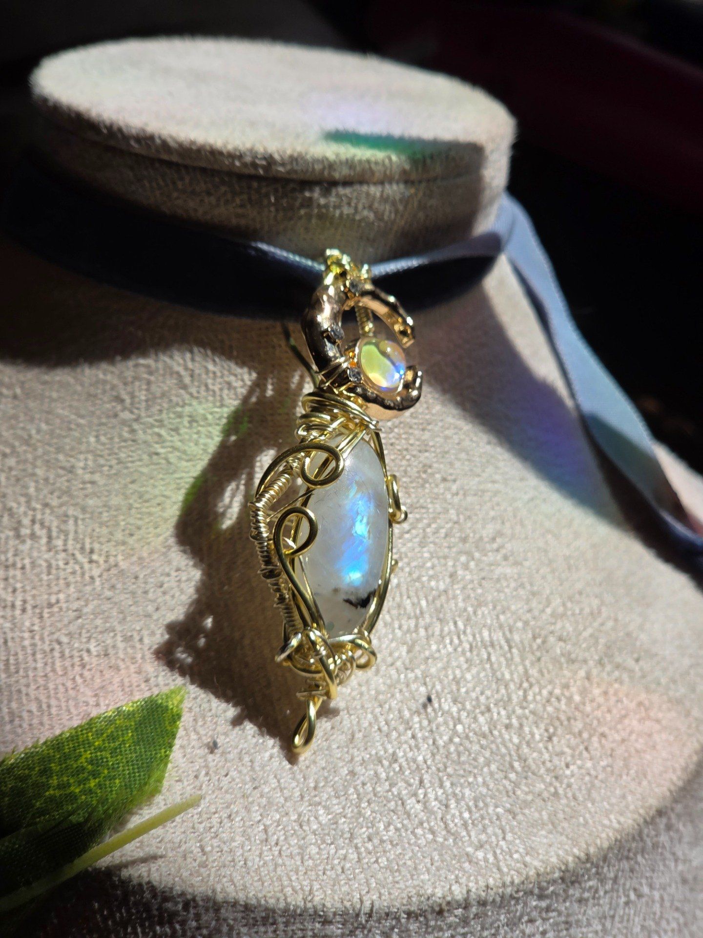 Pendentif Or Péristérite – Pierre De Lune Arc-En-Ciel & Protection Énergétique