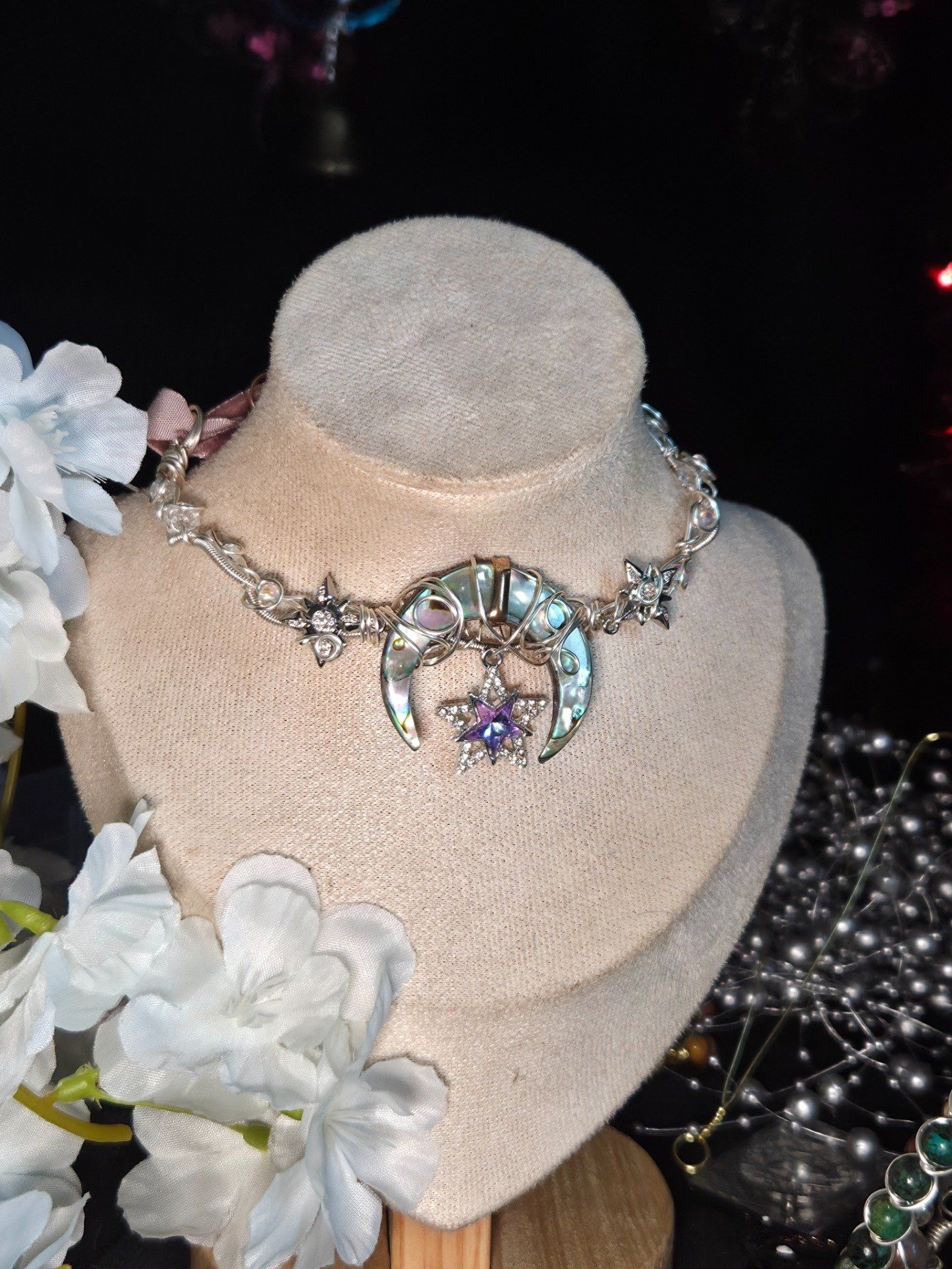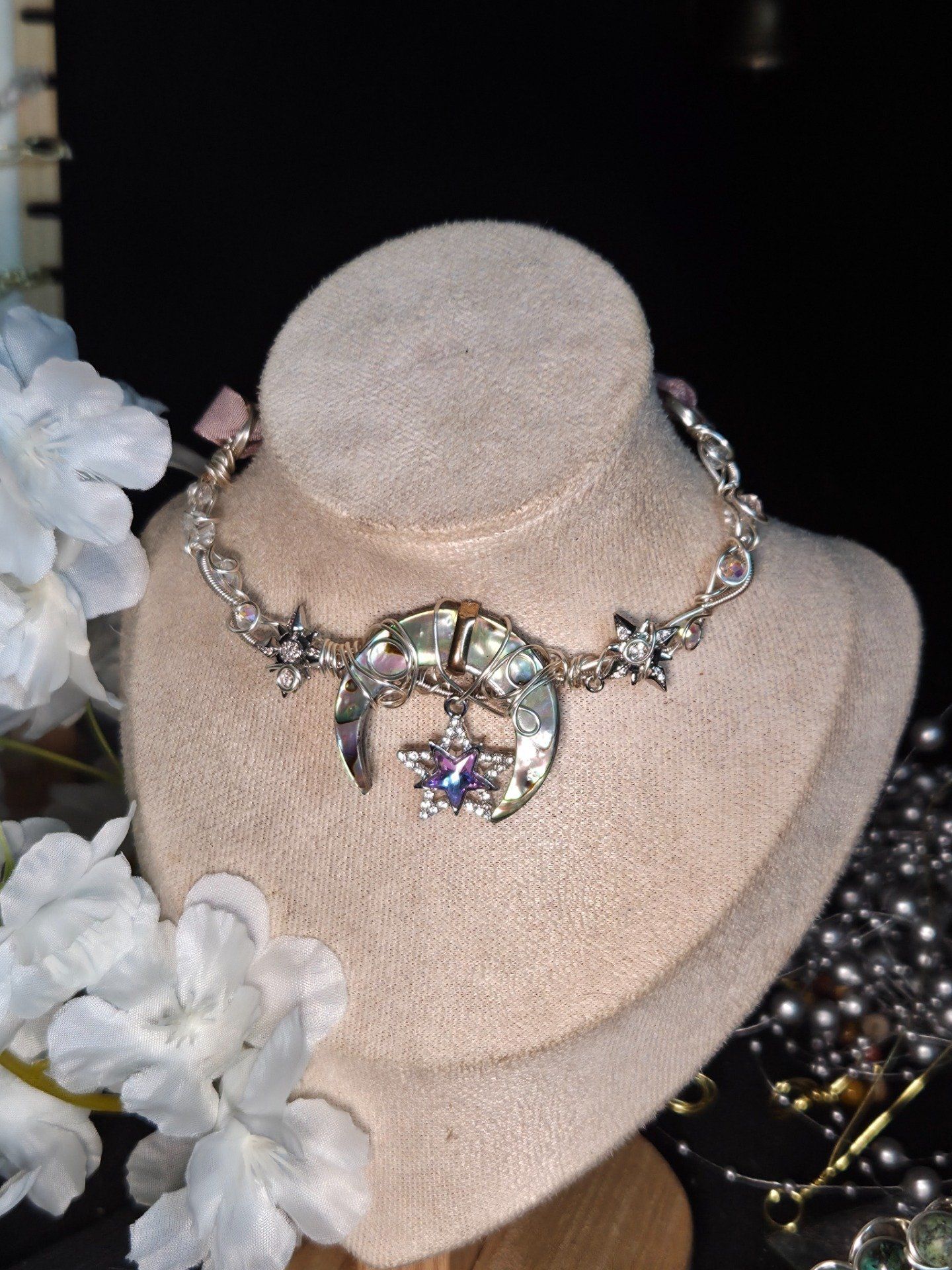 L'astre lunaire :Collier modulable Ormeau résiné