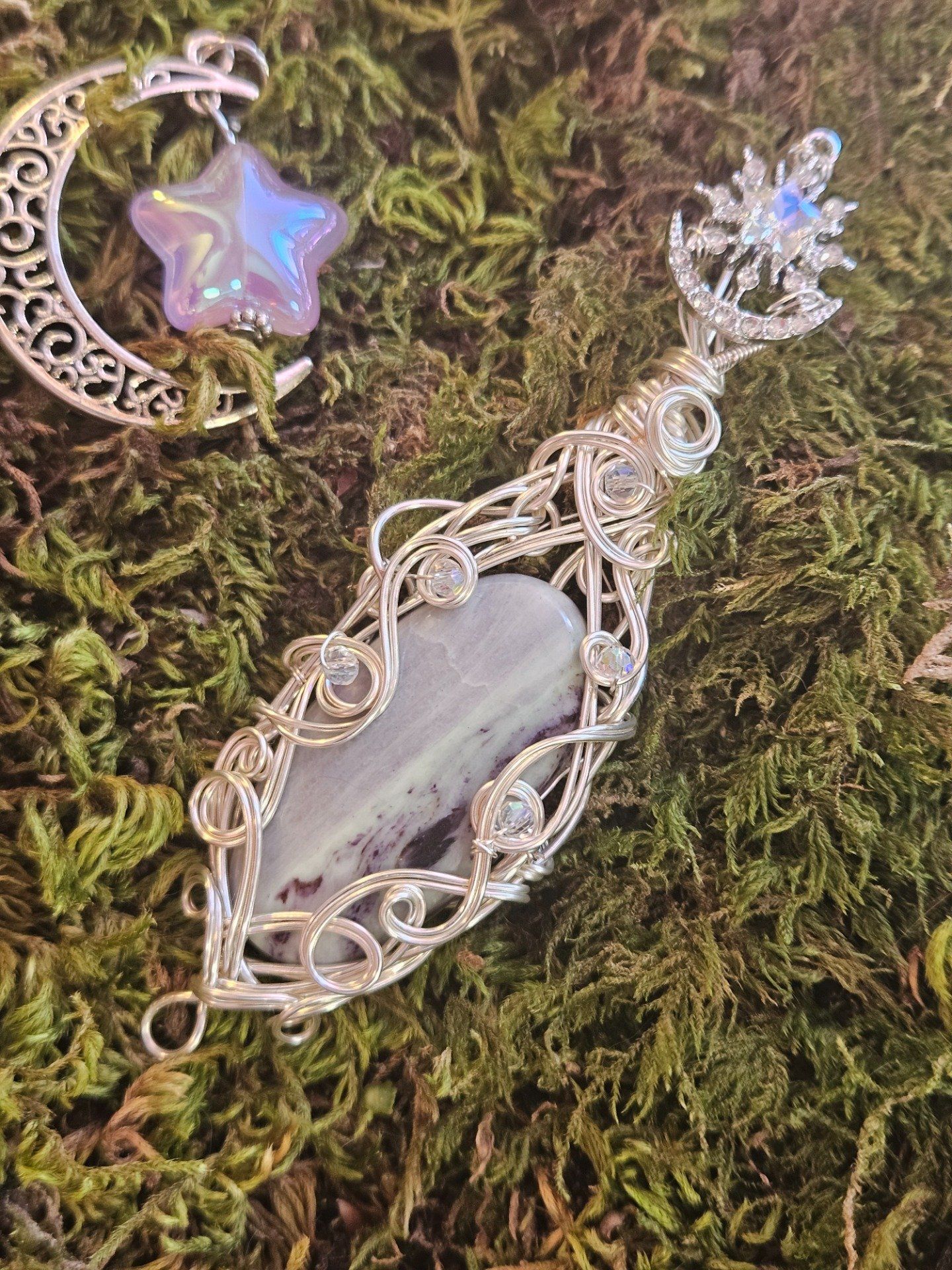 Cette Amulette Est Ornée De Kämmerite, Une Pierre Douce Et Profondément Spirituelle, Idéale Pour Ceux En Quête De Paix Intérieure Et De Guérison. Sa Couleur Apaisante Et Ses Énergies Purifiantes En Font Un Véritable Allié Dans Votre Cheminement Spirituel.