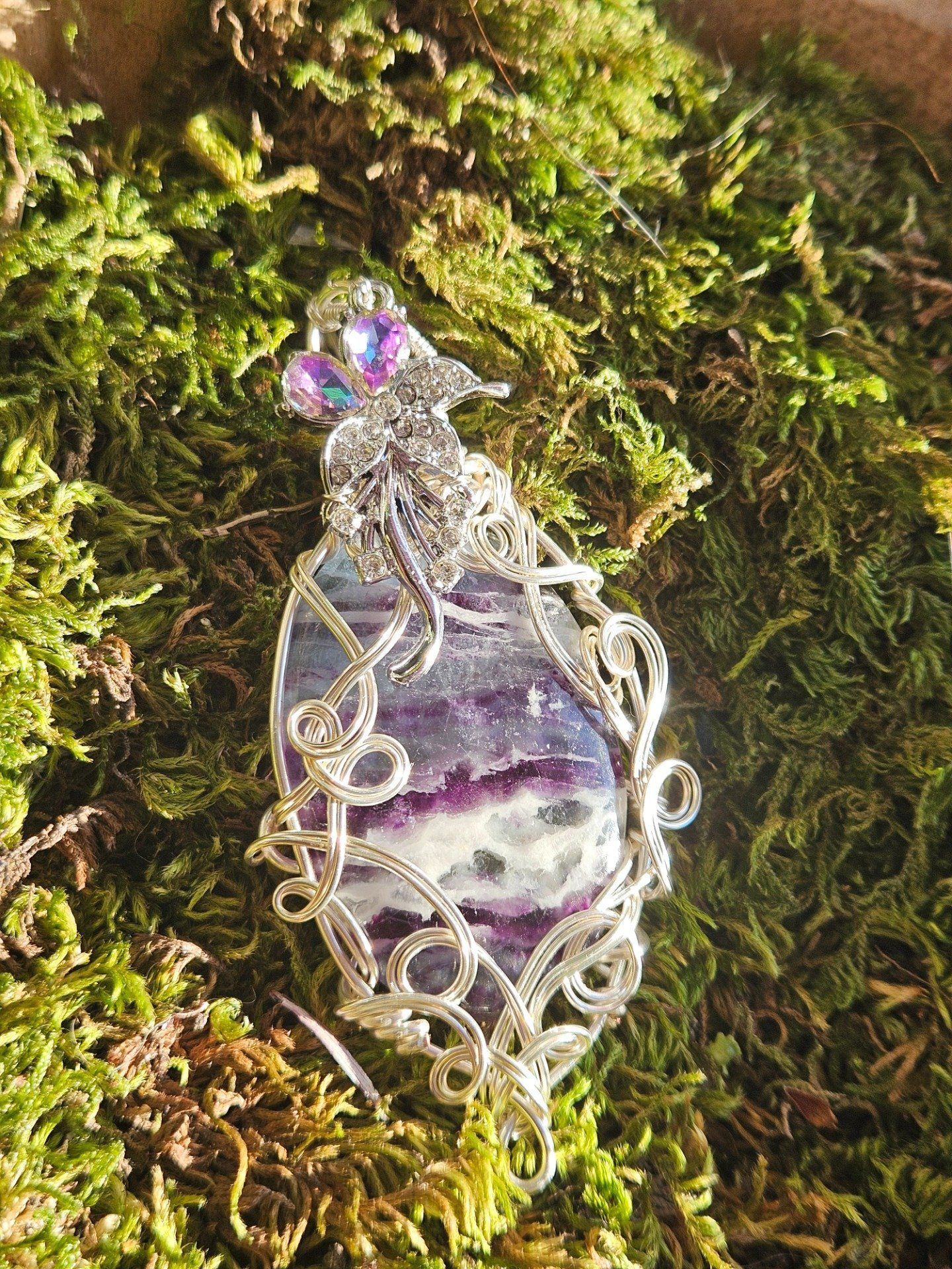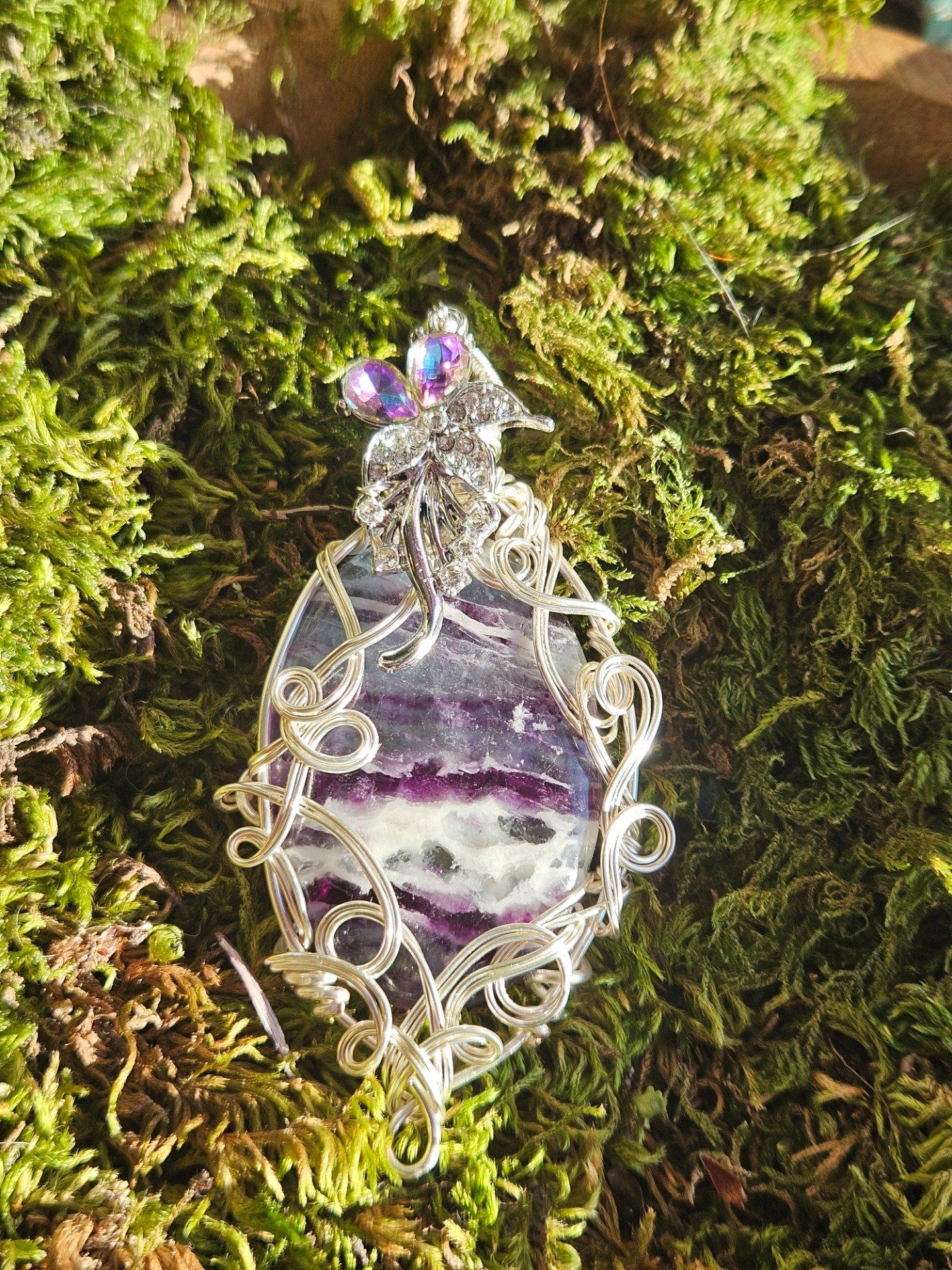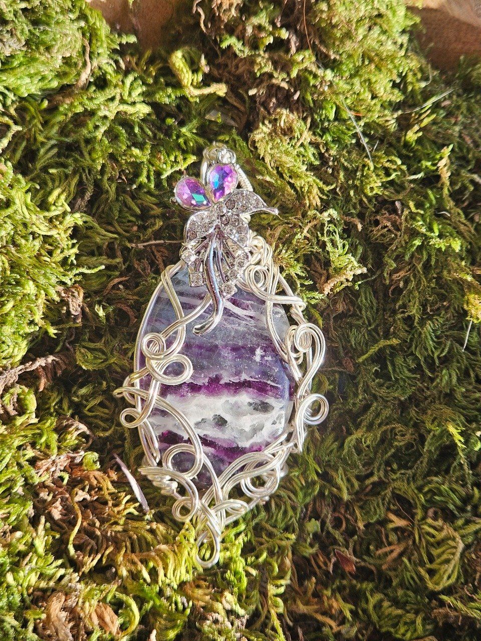 🎄 Amulette Légende de Noël – Fluorite, Bijou Argent & Cœur Cuivre