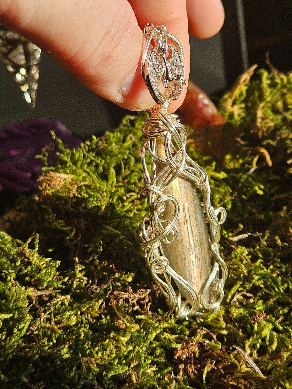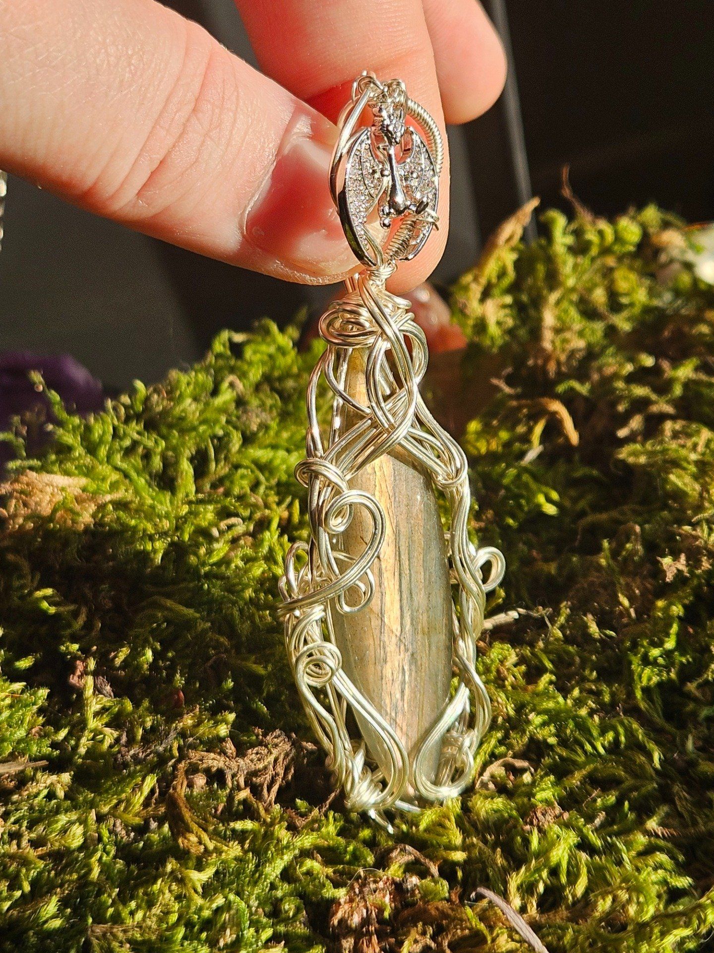 🎄 Amulette Légende de Noël en Labradorite Rose – Bijou Argent & Cœur Cuivre