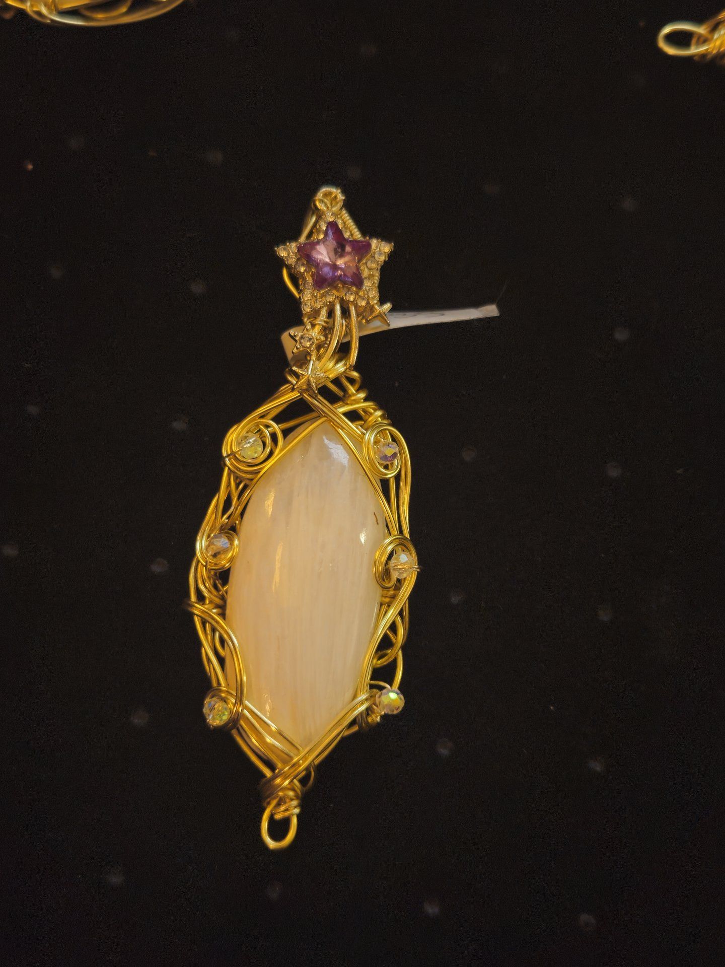 💎 Amulette Légende en Scolécite Blanche – Bijou Or & Cuivre