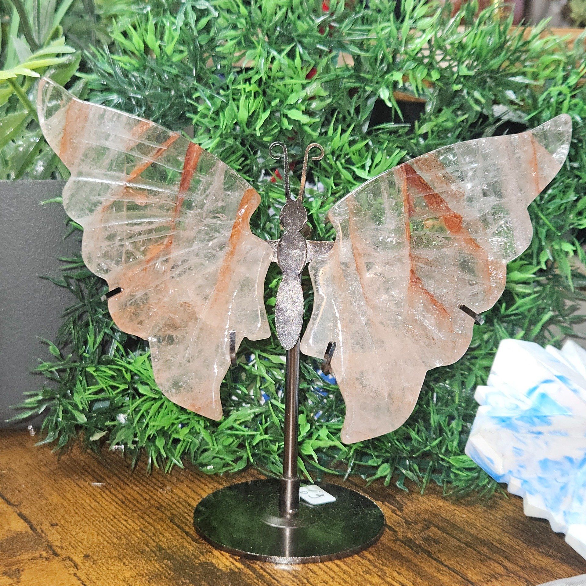 🦋 Papillon en Quartz Hématoïde – Transformation & Énergie d’Ancrage