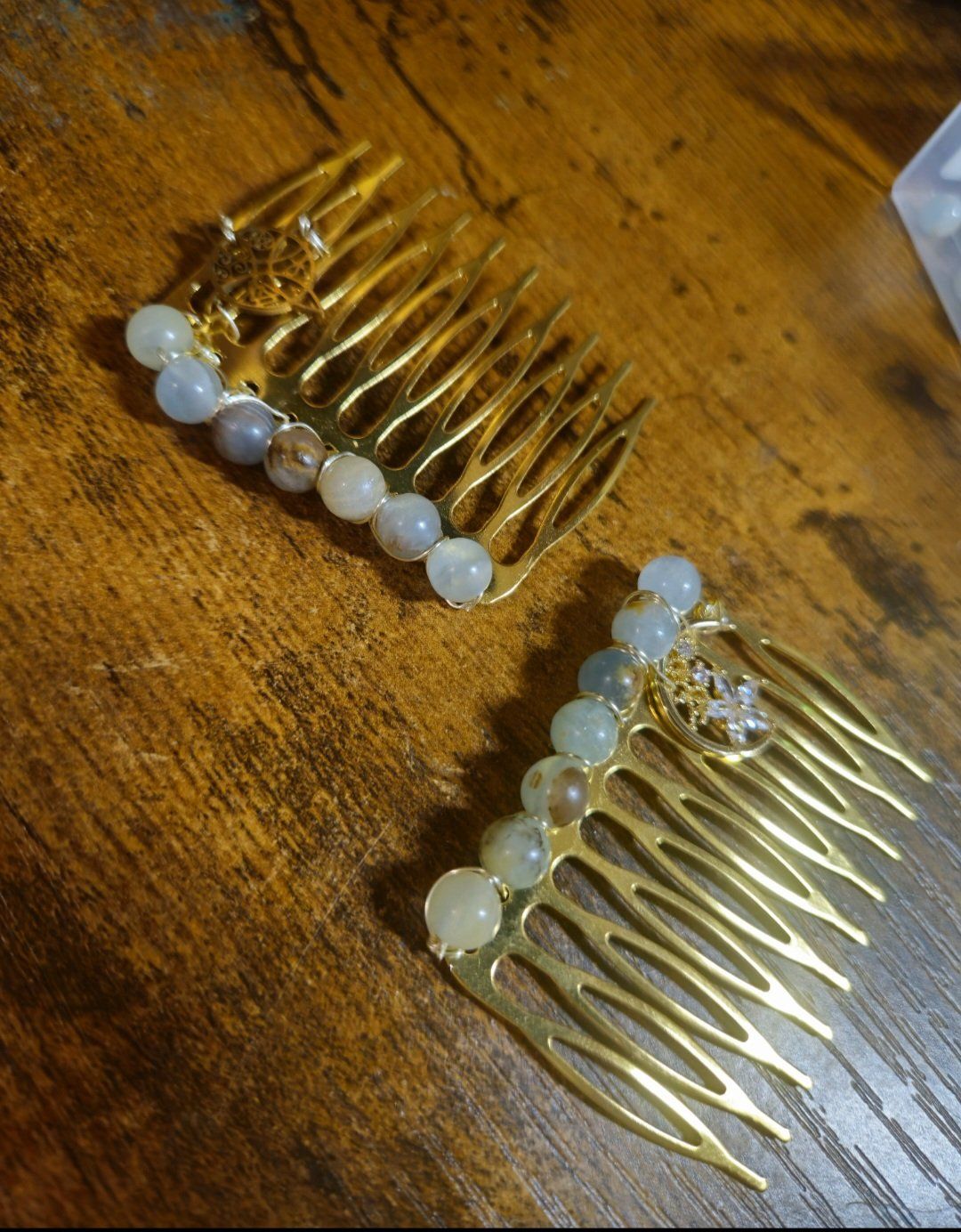 Peigne sur-mesure couleur doré breloque au choix en onyx bleu fait pour melkyQueen