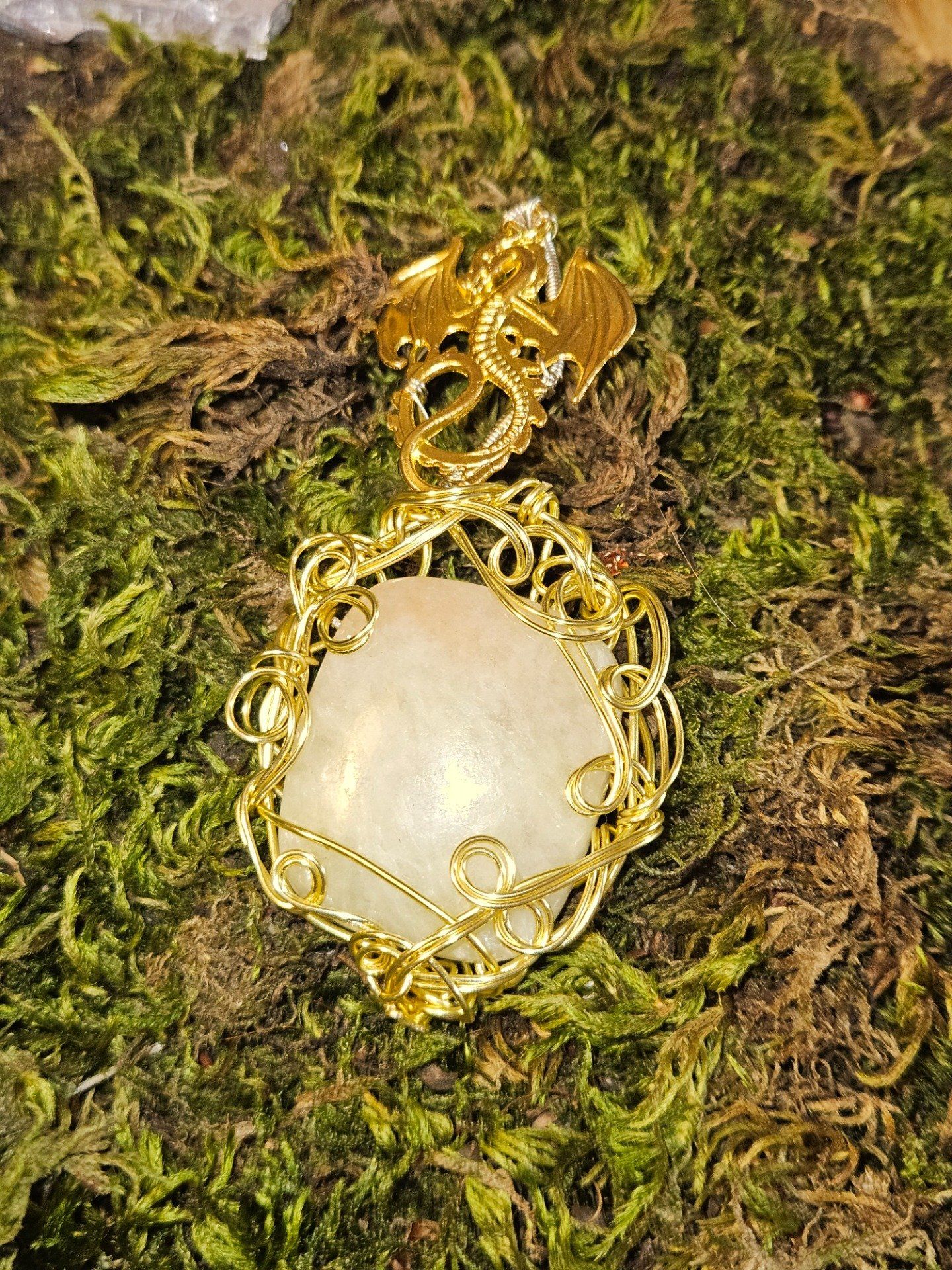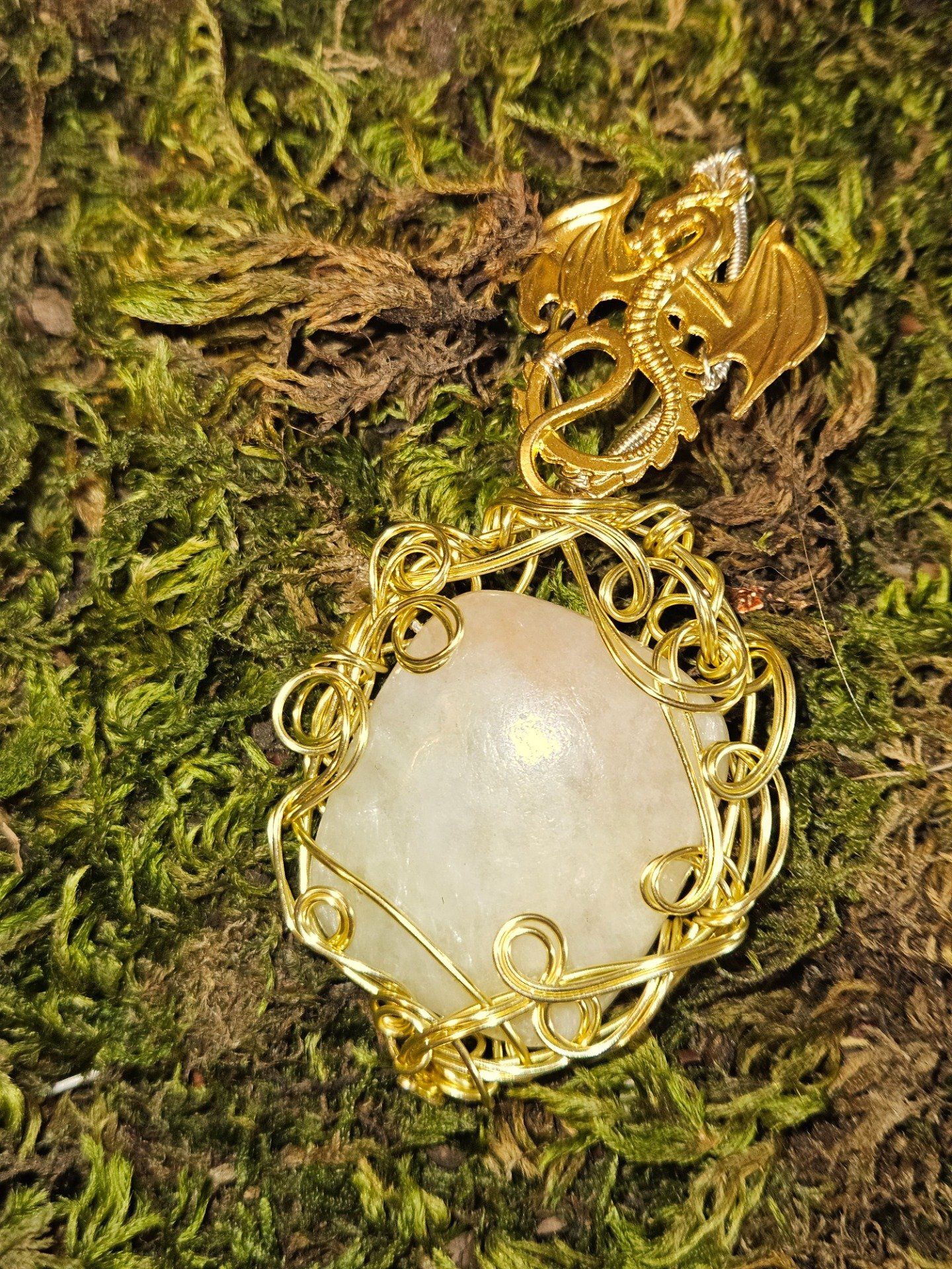 🐉 Pendentif Dragon – Apophylite sur Stibine