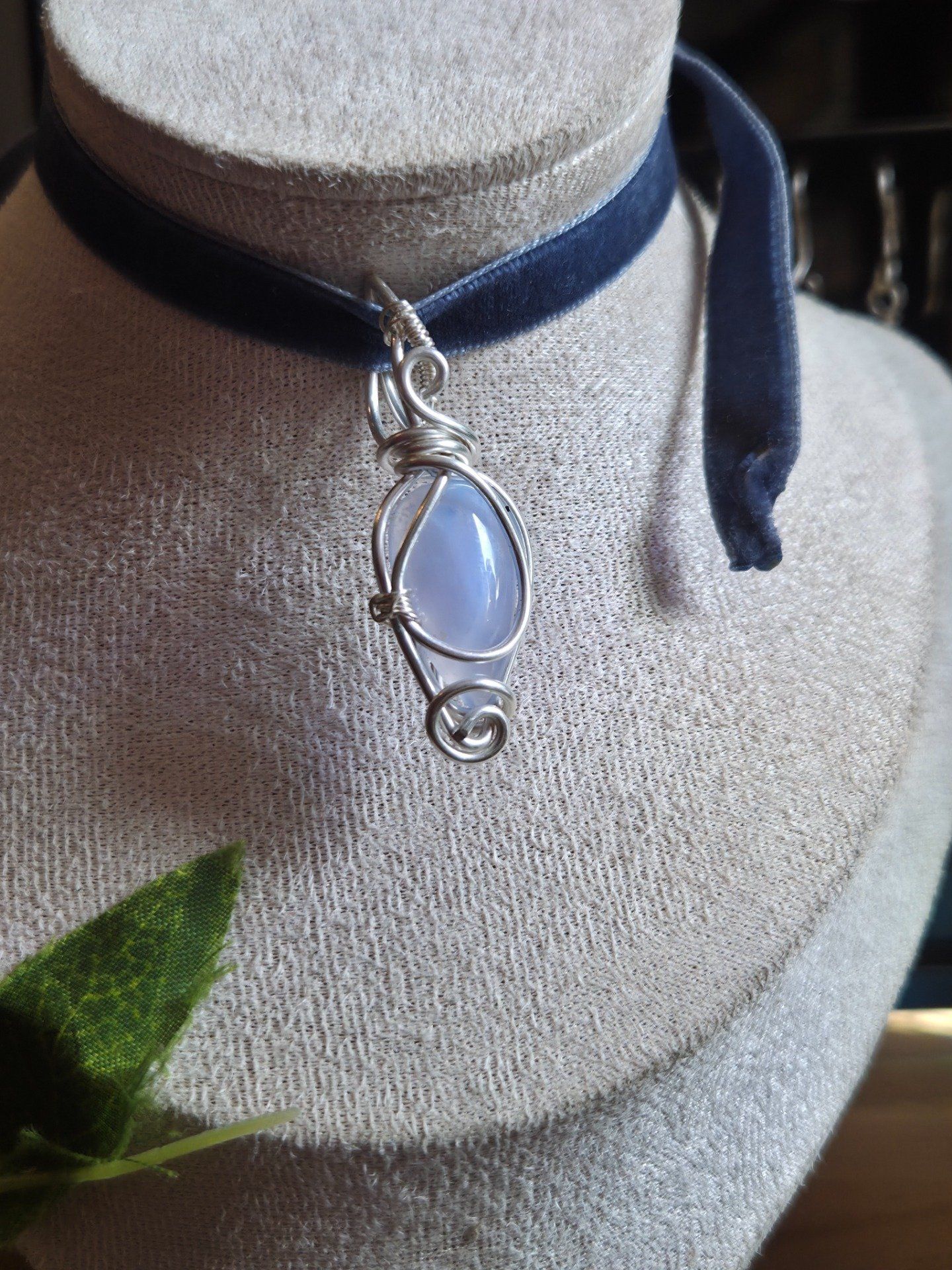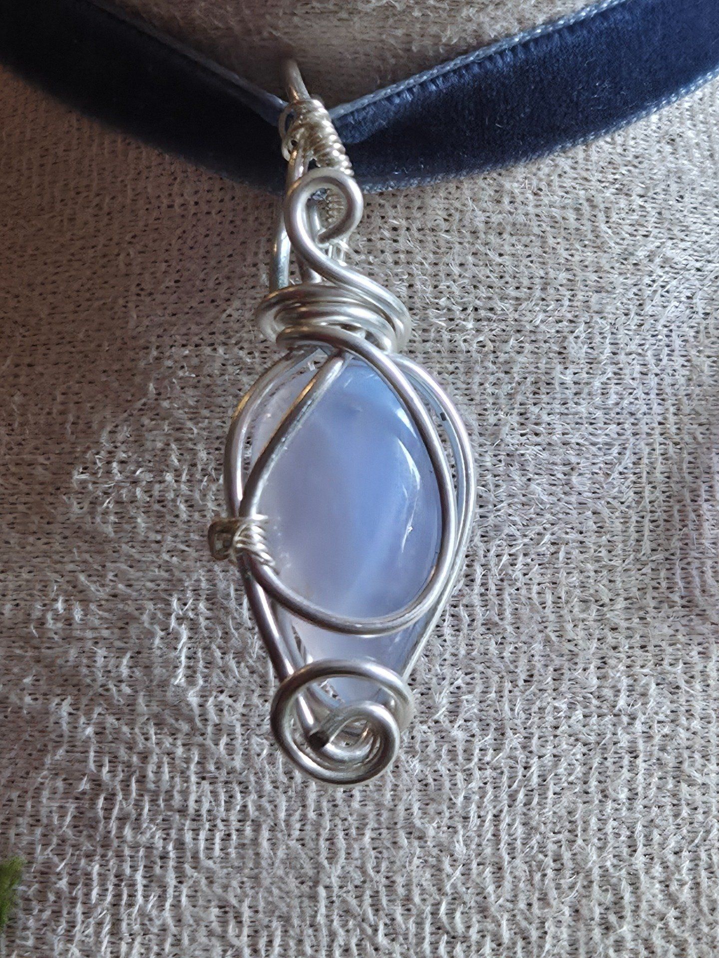 Ce pendentif en calcédoine Blue Lace allient douceur et élégance.