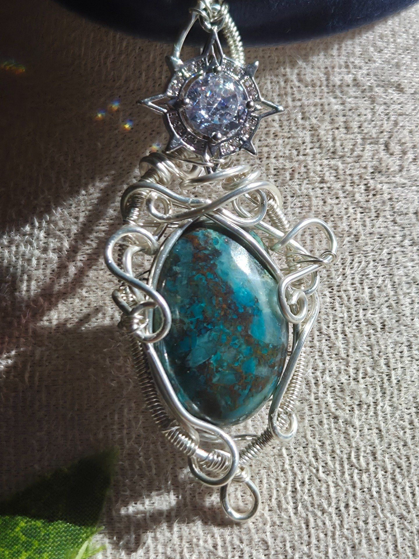 La Chrysocolle est une pierre naturellement apaisante, idéale pour ramener douceur, équilibre et sérénité. Dans cette version Éclats de Yule, elle est montée en argent fin, pour un pendentif délicat, lumineux et résolument hivernal.
