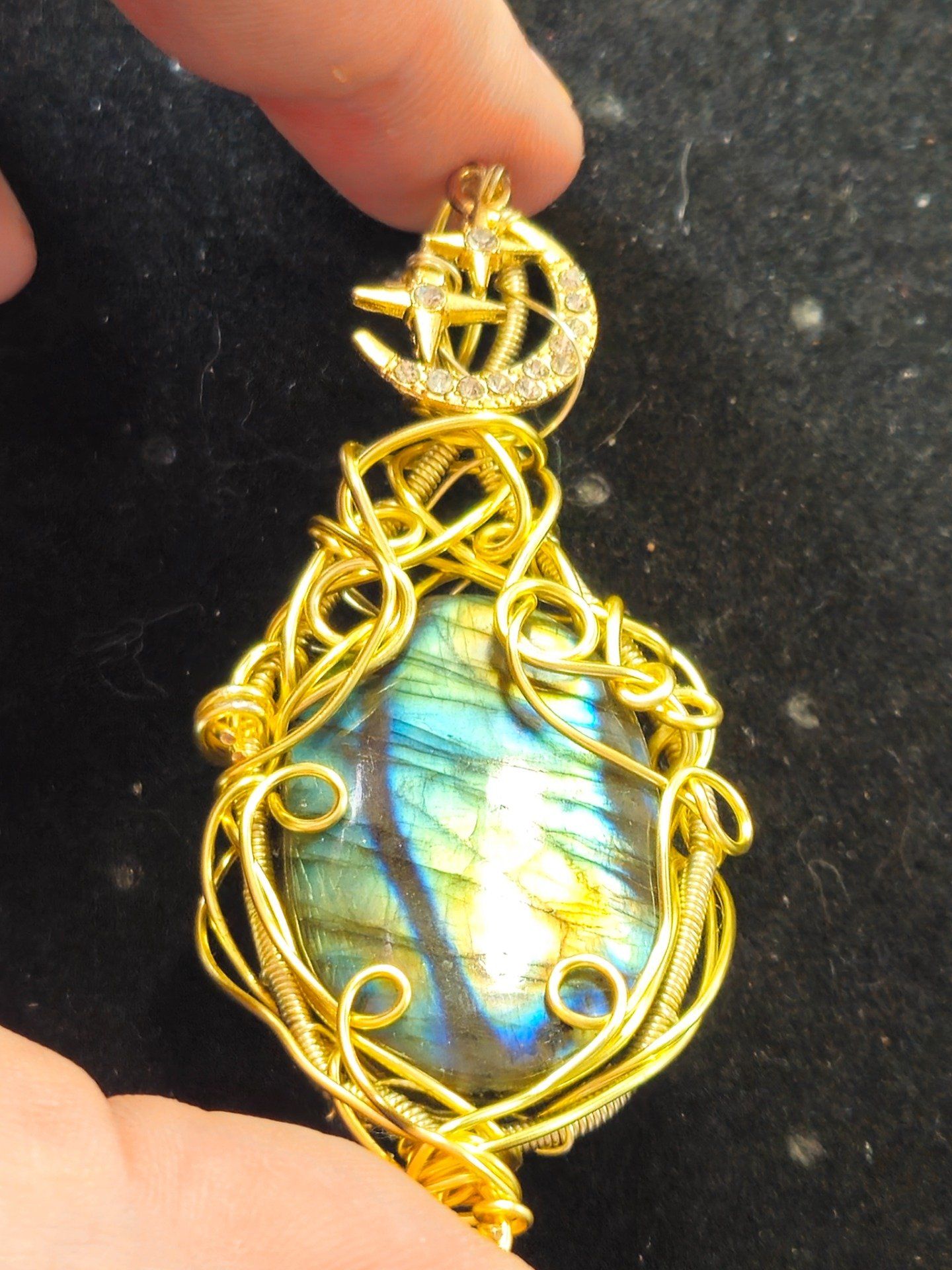 Pendentif Labradorite spectrolite -lune d'or