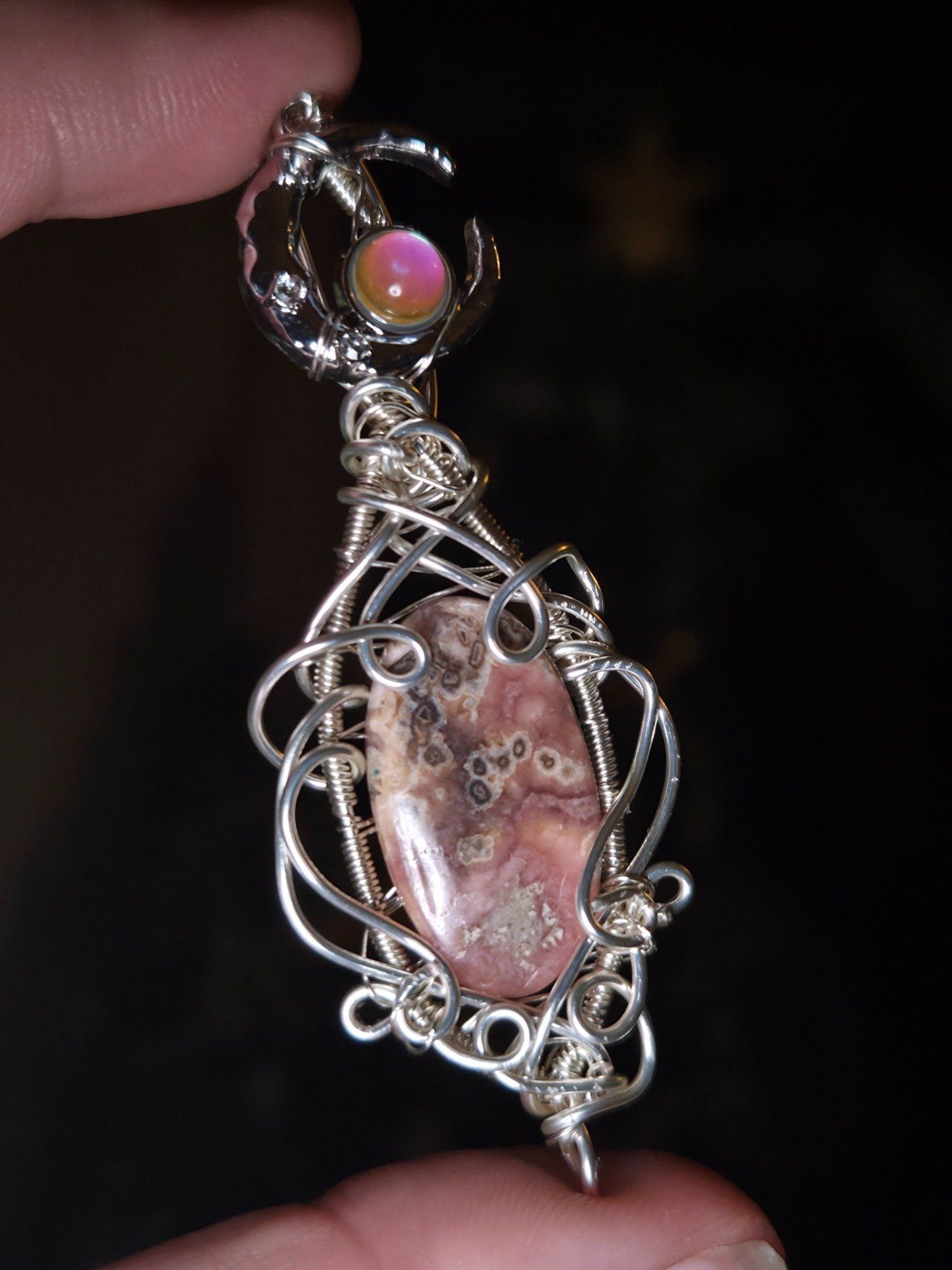 Pendentif Lunaire Rhodochrosite – Apaisement, Sérénité & Protection