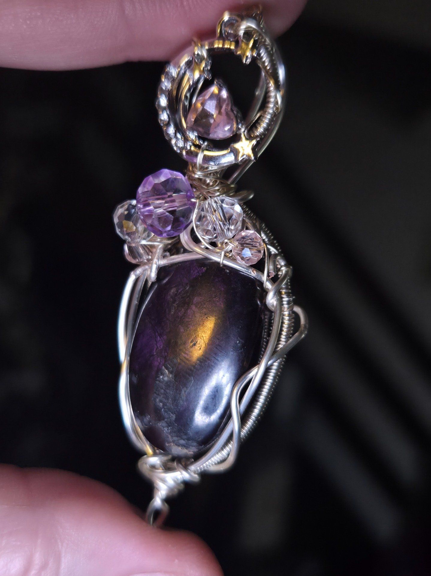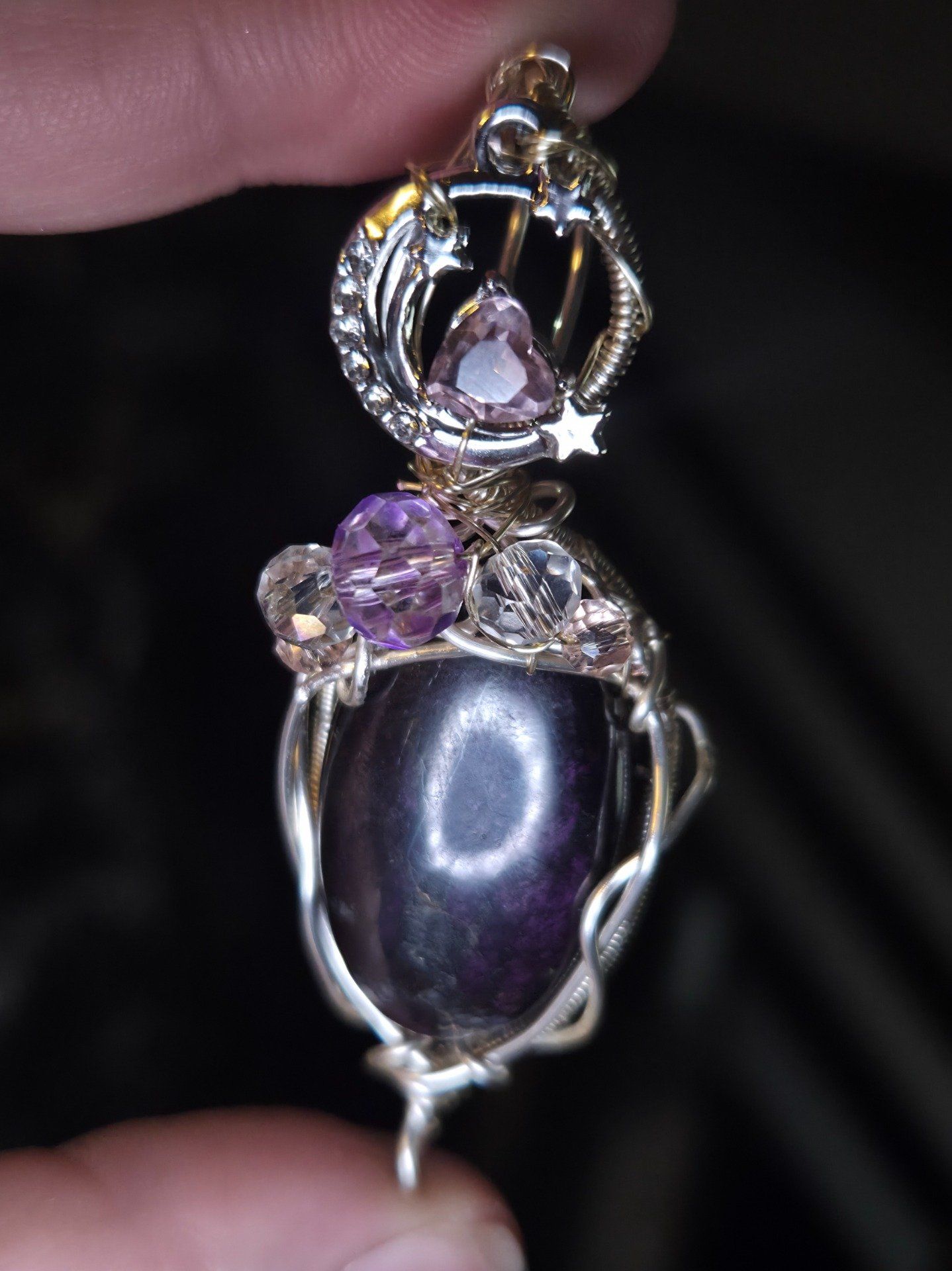 Pendentif Lune d’argent en Purpurite de Namibie 💜 – La Pierre de la Liberté Intérieure