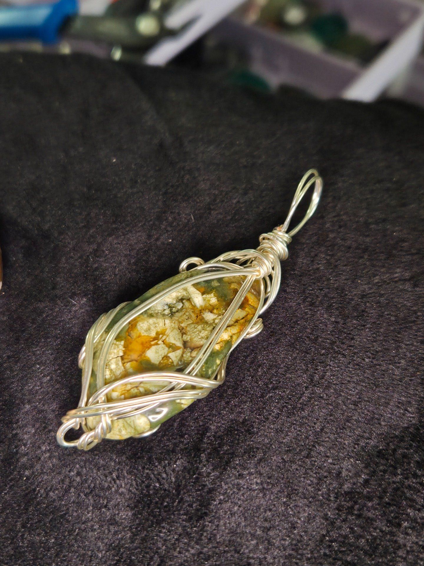 Pendentif Pomme Poison en Jaspe Rhyolite (Jaspe Rainforest