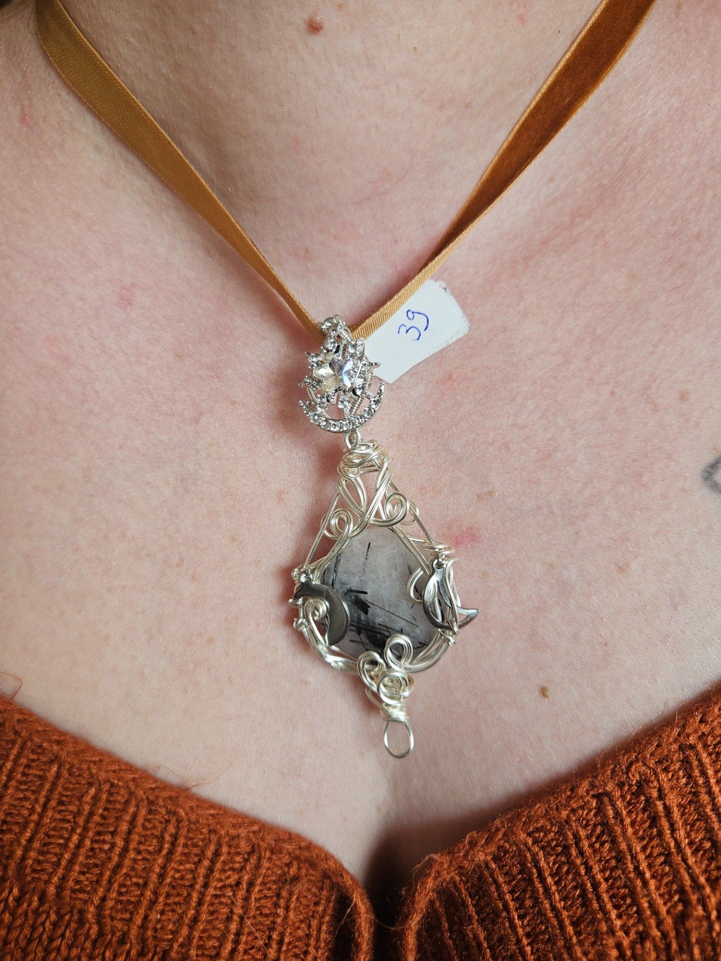 Pendentif triple lune Quartz Tourmaliné – Ancrage & Protection énergétique