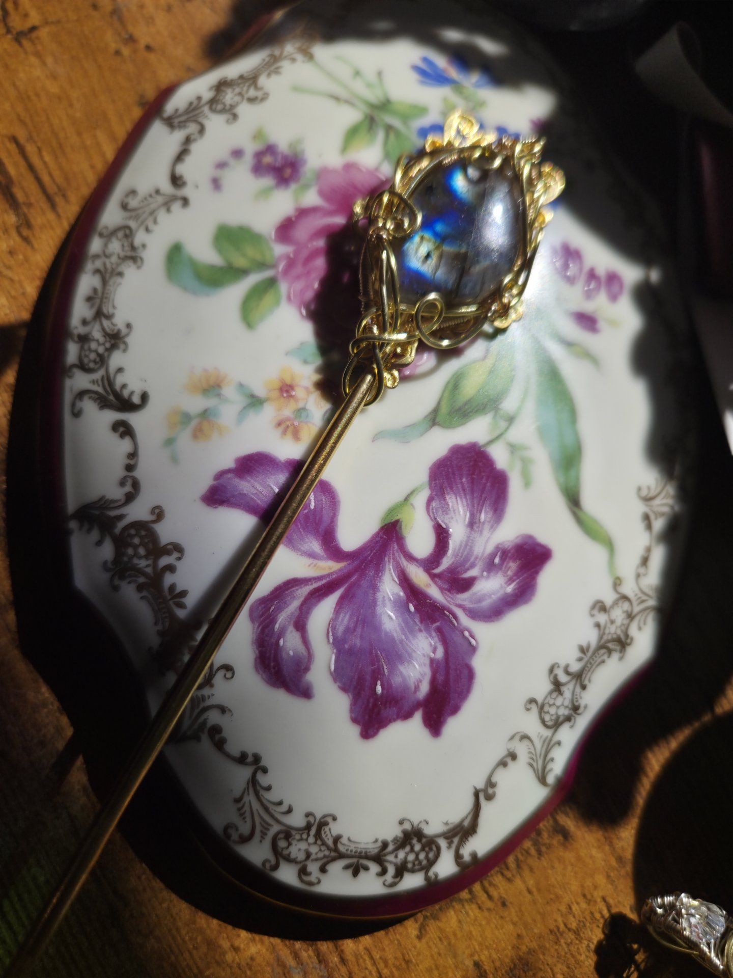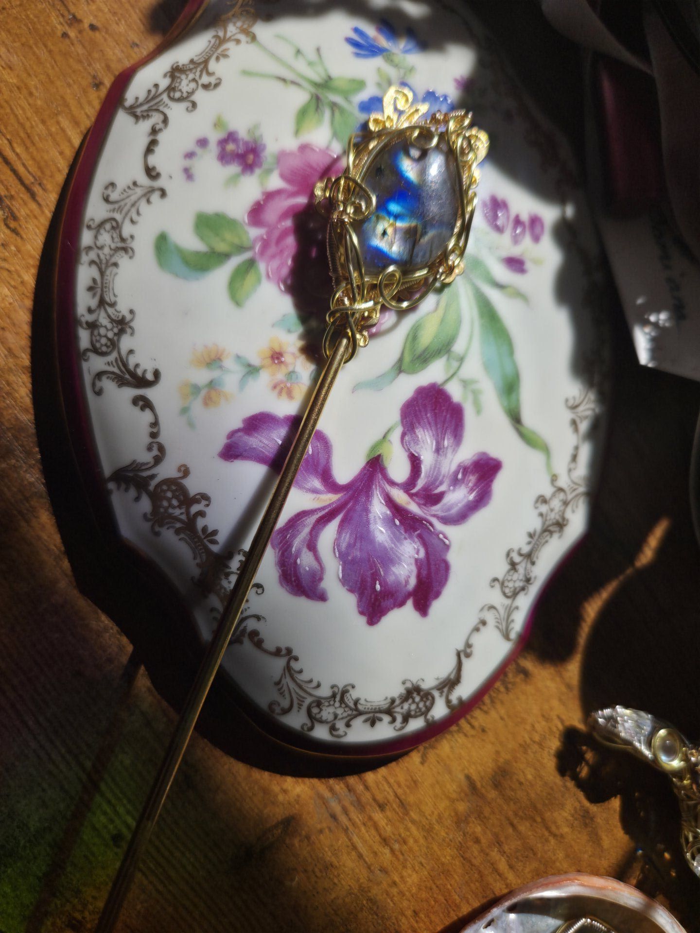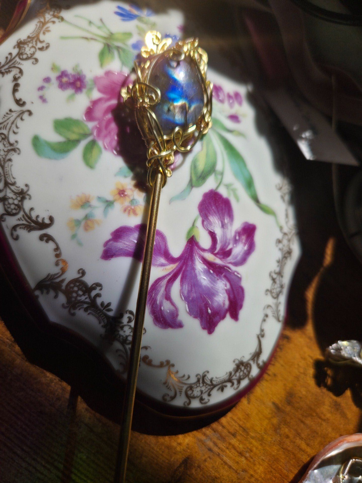 Pic à cheveux dorée Labradorite : confiance & protection.