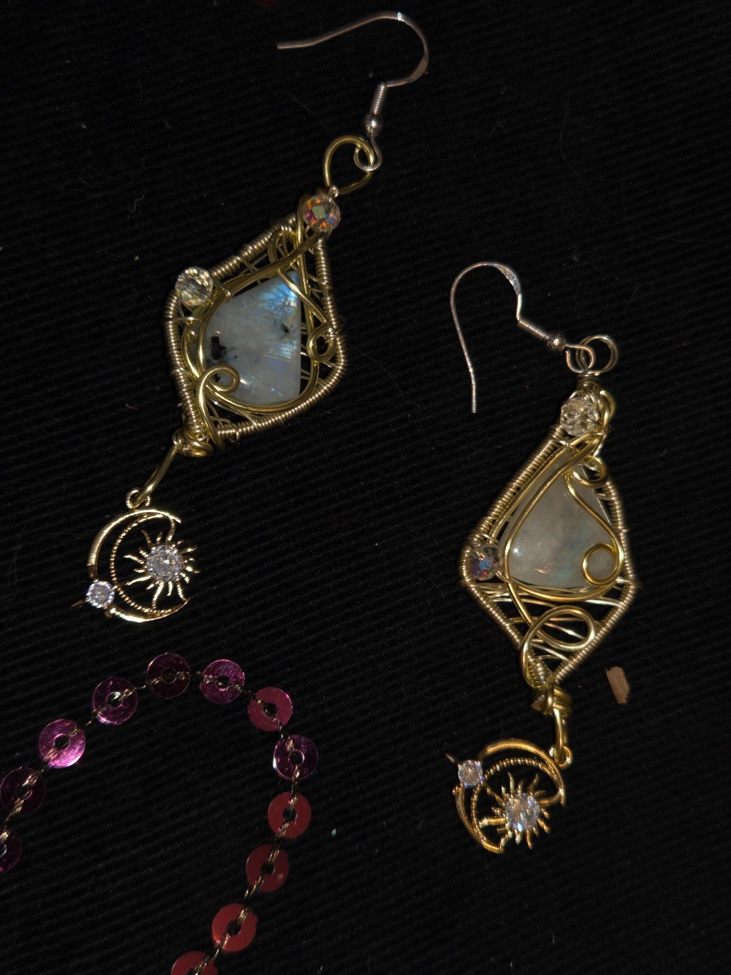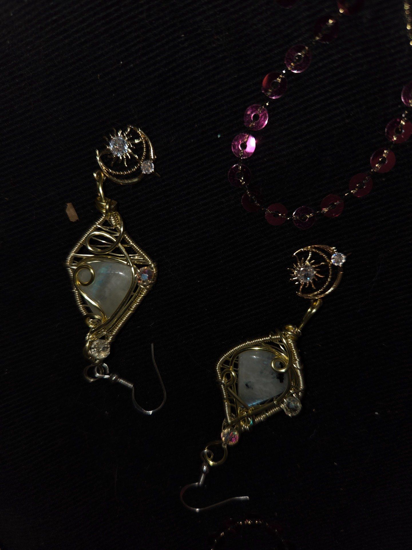 Pierre de lune ✨ Péristerite ✨ Boucle d'oreille. - Copie