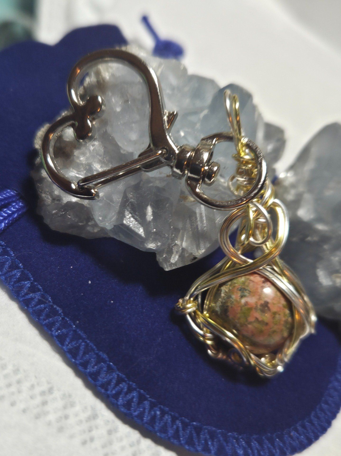 Porte clé❤️ cuivre en Unakite – Énergie, Harmonie & Sérénité
